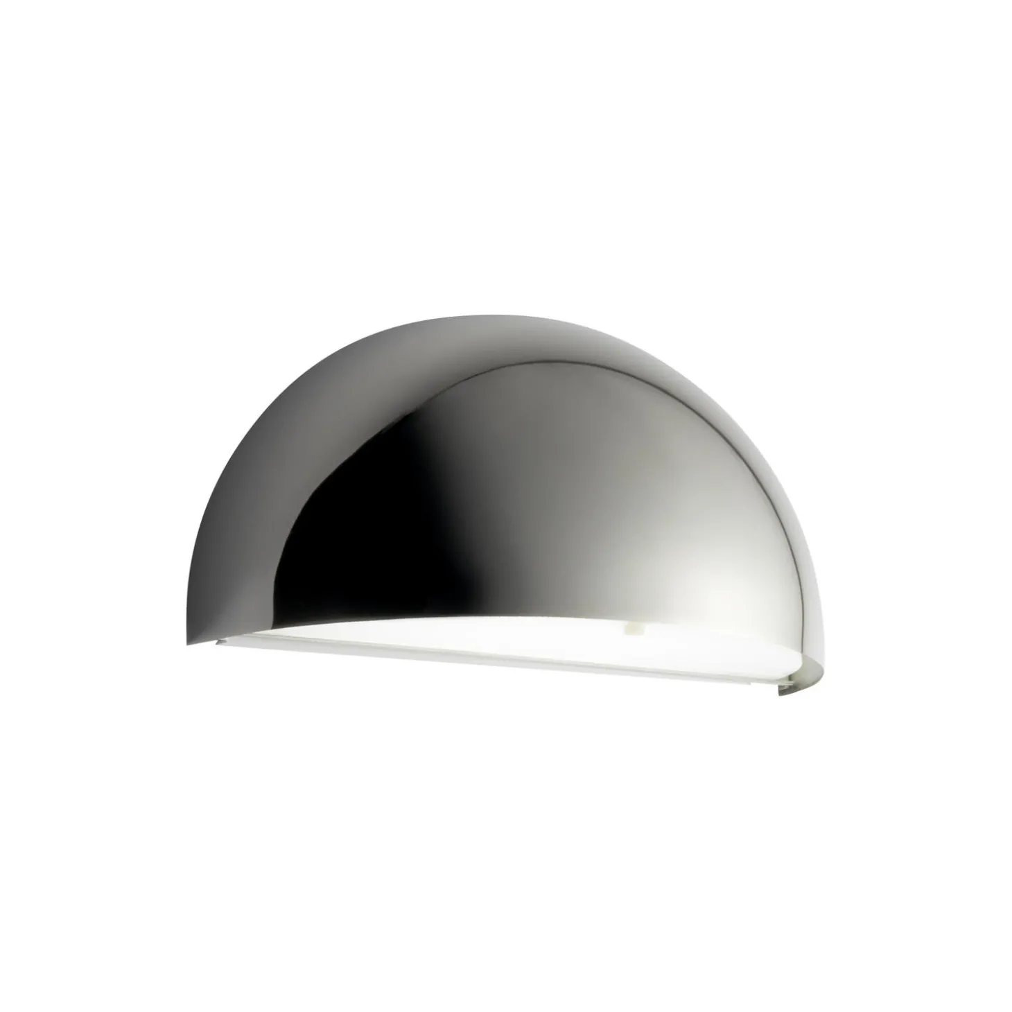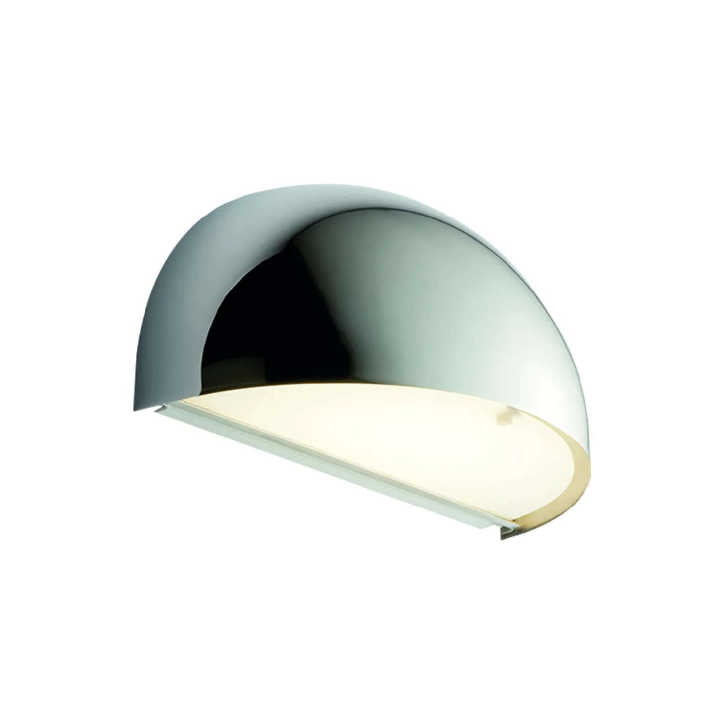 RØRHAT væglampe i krom fra LIGHT-POINT. Farve: krom. Mål: H: 14 x B: 26 x D: 13,6 cm. Lyskilde: 10,5W LED. 3000K. Kan tilsluttes lysdæmper og anvendes både indendørs og udendørs. Design: Jesper Juhl Pedersen.