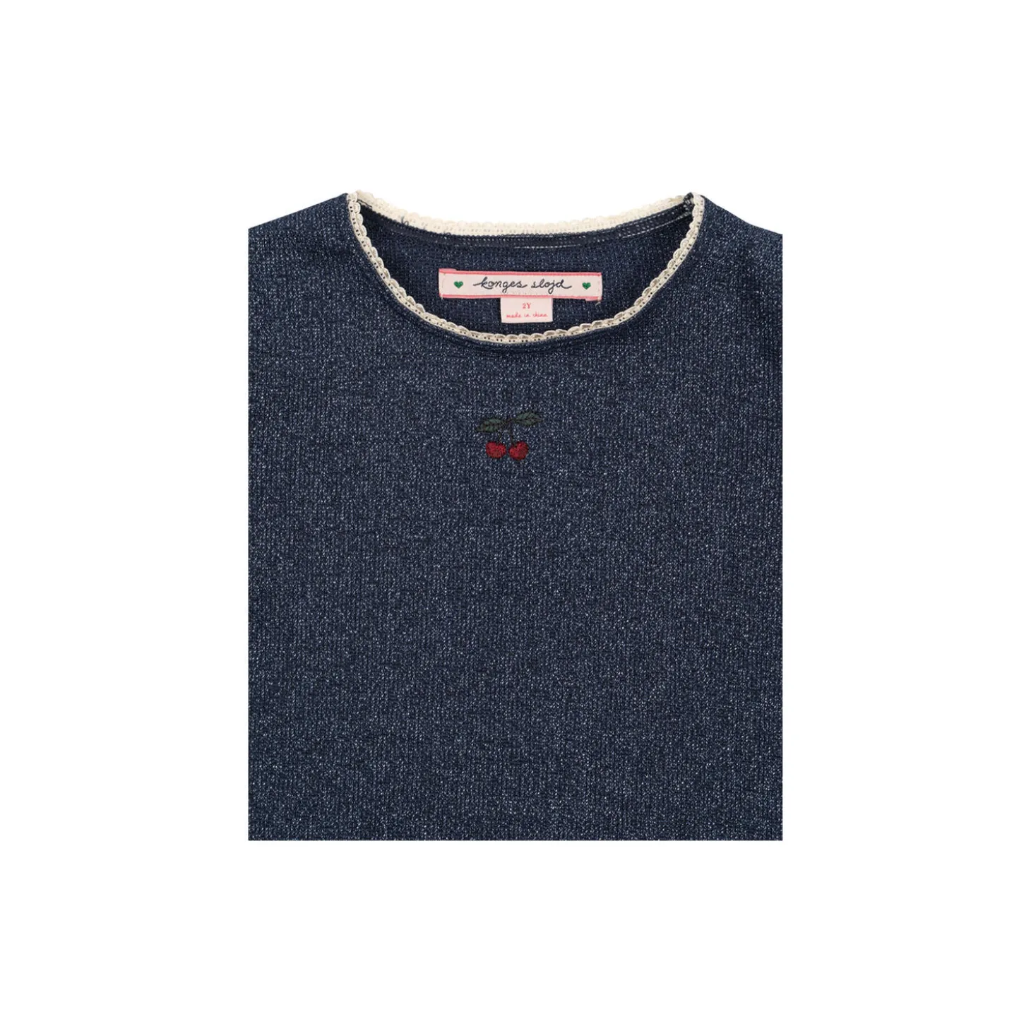 Soft and stretchy rib blouse. A perfect everyday piece woven with a lurex thread for a little bit of shine.Made in 60% cotton with 38% lurex and 2% elastane.
