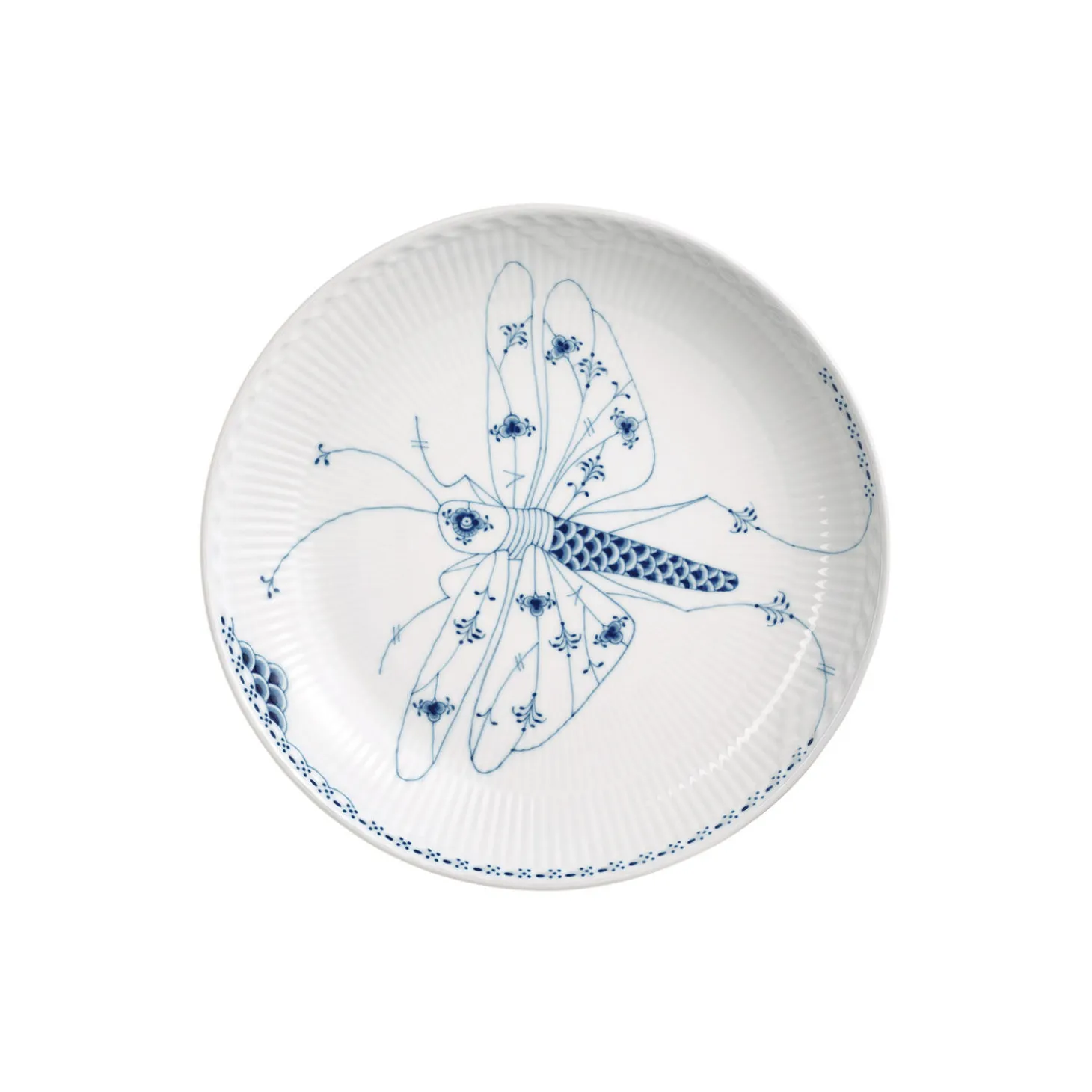 Royal Creatures skål med græshoppe i porcelæn fra Royal Copenhagen. Denne Royal Creatures skål er udsmykket med en håndmalet græshoppe, der får liv af designelementer fra klassiske Royal Copenhagen stel. Du kan let og elegant skabe et personligt udtryk ved at kombinere steldele fra Royal Creatures med steldele fra eksempelvis Musselmalet Halvblonde eller Prinsesse.