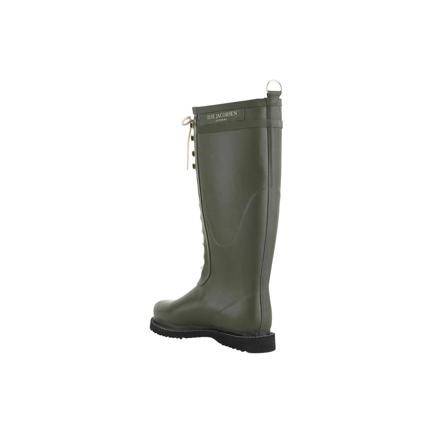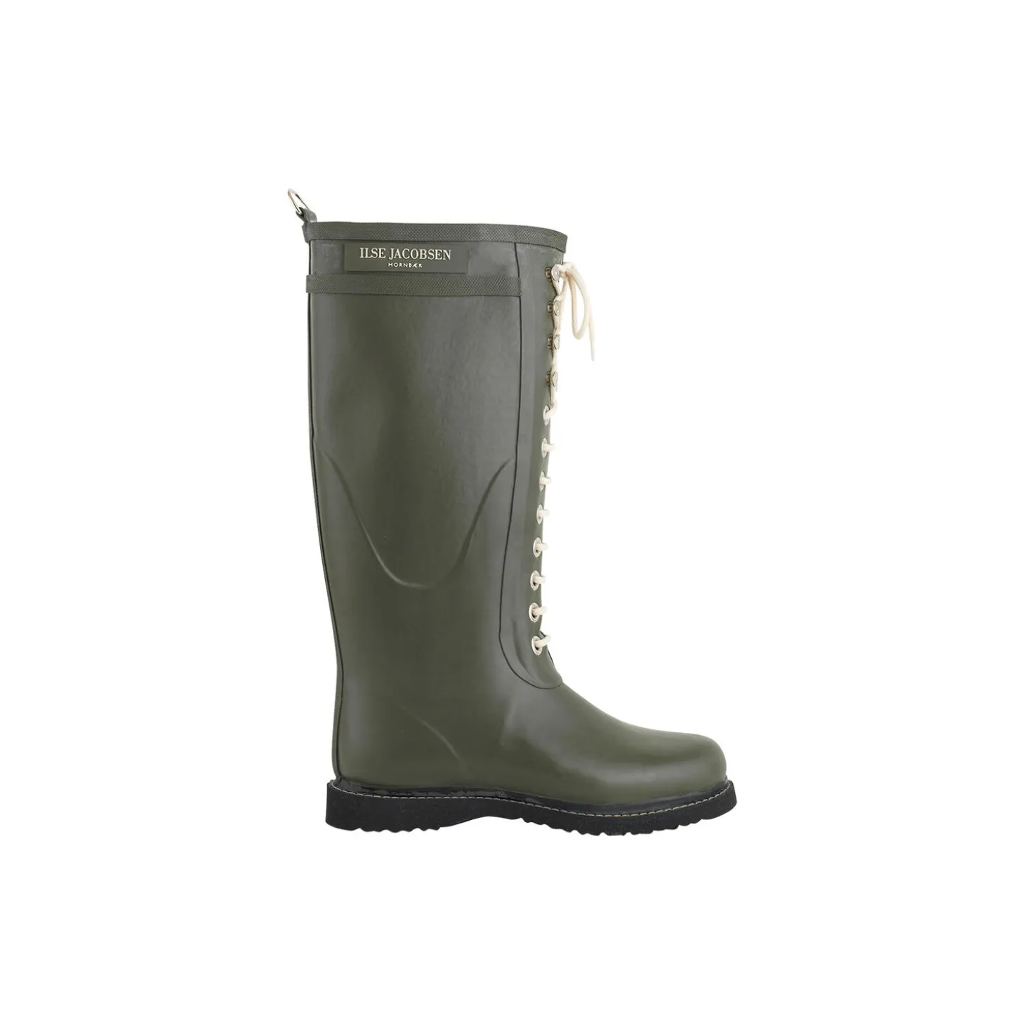 The iconic laced rubber boots by ILSE JACOBSEN HORNBÆK. These knee length rain boots features a decorative D-ring at center back and logo on the shaft. These wellingtons are made of sustainably harvested natural rubber and have been cut by hand. This material can withstand temperatures down to -20 degrees Celsius. The rubber composition is 80% pure, natural rubber and 20% secret formula. Entirely PVC-free, our boots contain no animal by-products. If not treated regularly, natural rubber will develop a white surface over the years. This is simply because the rubber will lose its essential oil. To keep your boots in great condition for many years to come, we recommend that you treat them once a month with our oil. New laces are available in several colours.