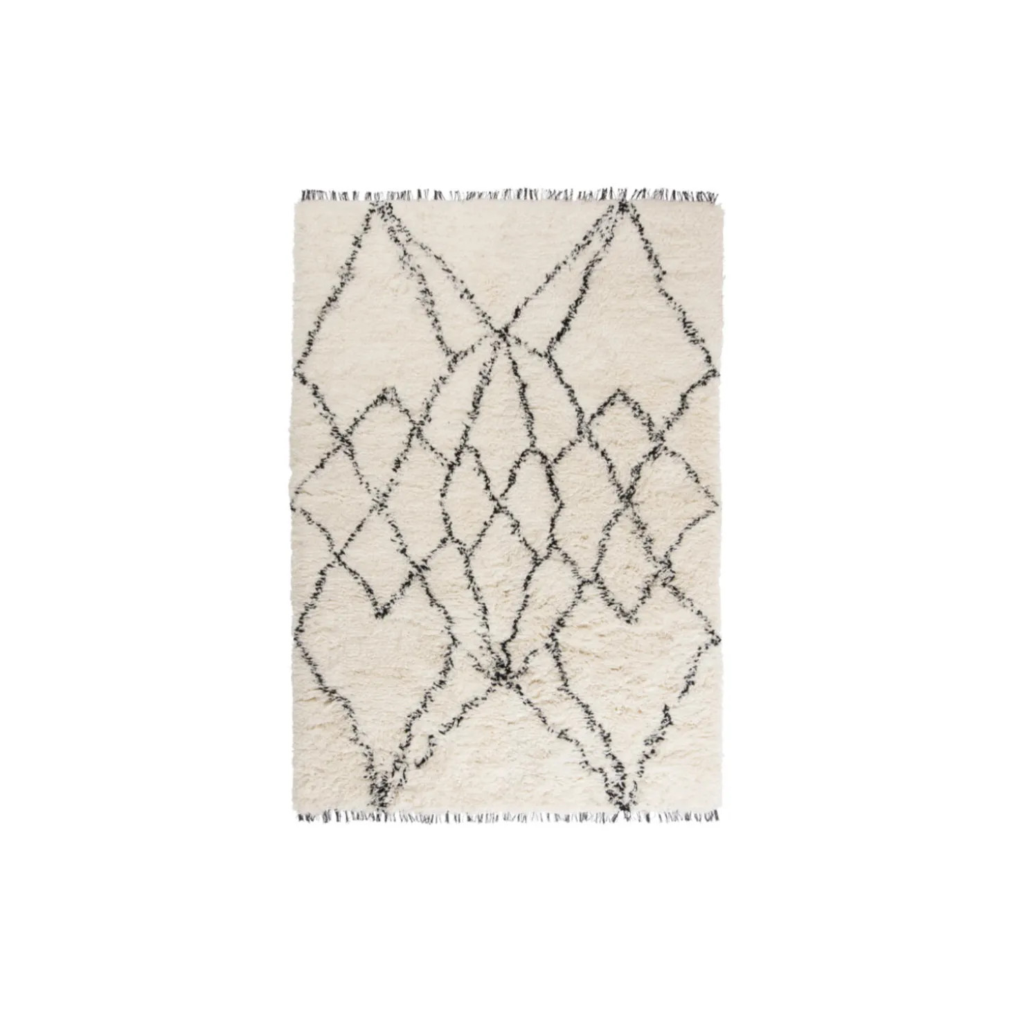 Ruffle gulvtæppe i 100% newzealandsk uld fra Linie Design. Farve: black. Mål: 140×200 cm. Design: Linie Design Team.