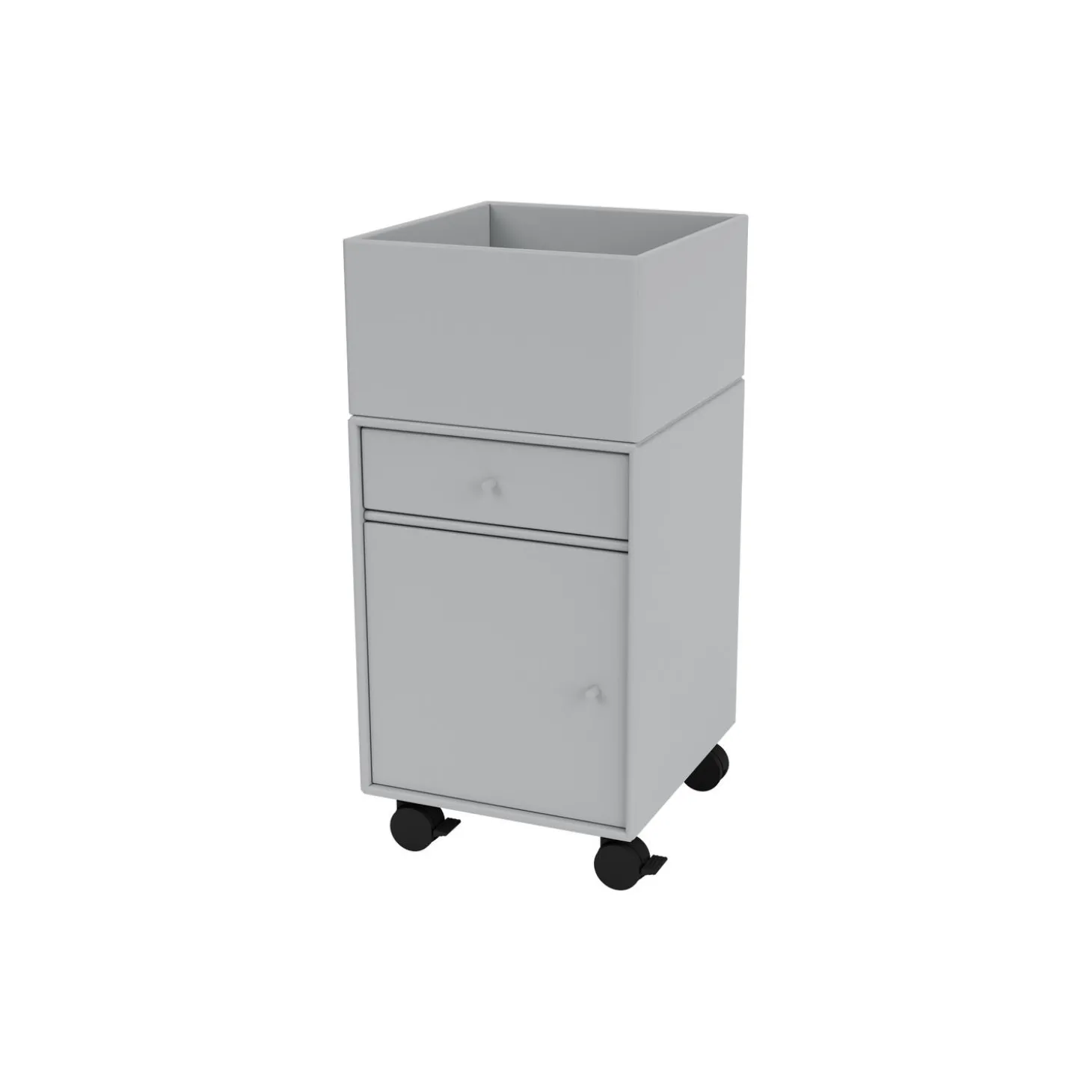 RUNNER er opbevaring på hjul, så du på hjemmekontoret eller i andre rum kan rulle det nødvendige udstyr hen, hvor du skal bruge det. Øverst er der kassen, åben i toppen, her kan du opbevare planter – alternativt, mapper, bøger, plakatrør eller lignende. Under topkassen er der en skuffe og et lille skab. RUNNER er dermed helt perfekt til ændre funktion og skabe forandring på det lille hjemmekontor.