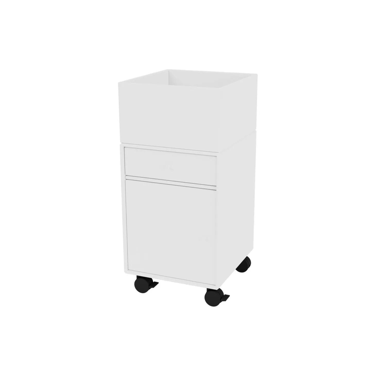RUNNER er opbevaring på hjul, så du på hjemmekontoret eller i andre rum kan rulle det nødvendige udstyr hen, hvor du skal bruge det. Øverst er der kassen, åben i toppen, her kan du opbevare planter – alternativt, mapper, bøger, plakatrør eller lignende. Under topkassen er der en skuffe og et lille skab. RUNNER er dermed helt perfekt til ændre funktion og skabe forandring på det lille hjemmekontor.