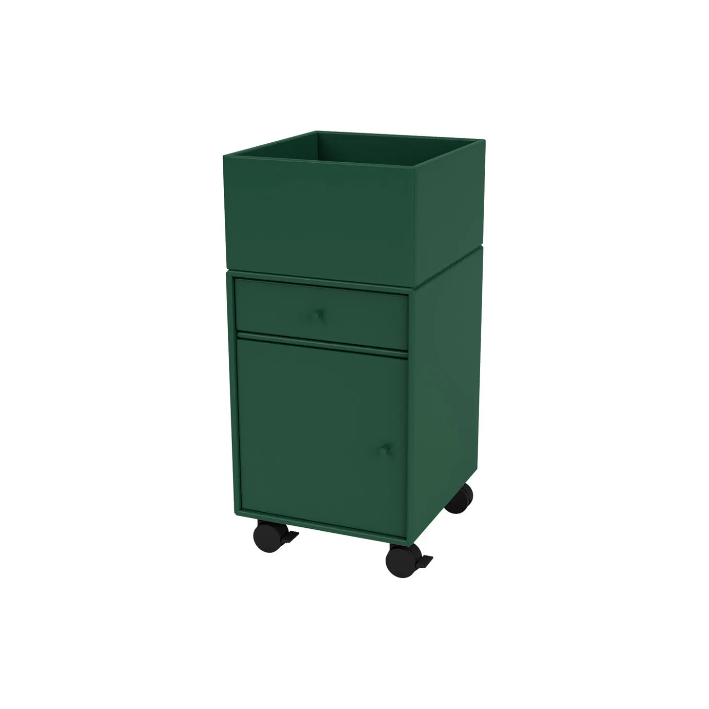 RUNNER er opbevaring på hjul, så du på hjemmekontoret eller i andre rum kan rulle det nødvendige udstyr hen, hvor du skal bruge det. Øverst er der kassen, åben i toppen, her kan du opbevare planter – alternativt, mapper, bøger, plakatrør eller lignende. Under topkassen er der en skuffe og et lille skab. RUNNER er dermed helt perfekt til ændre funktion og skabe forandring på det lille hjemmekontor.