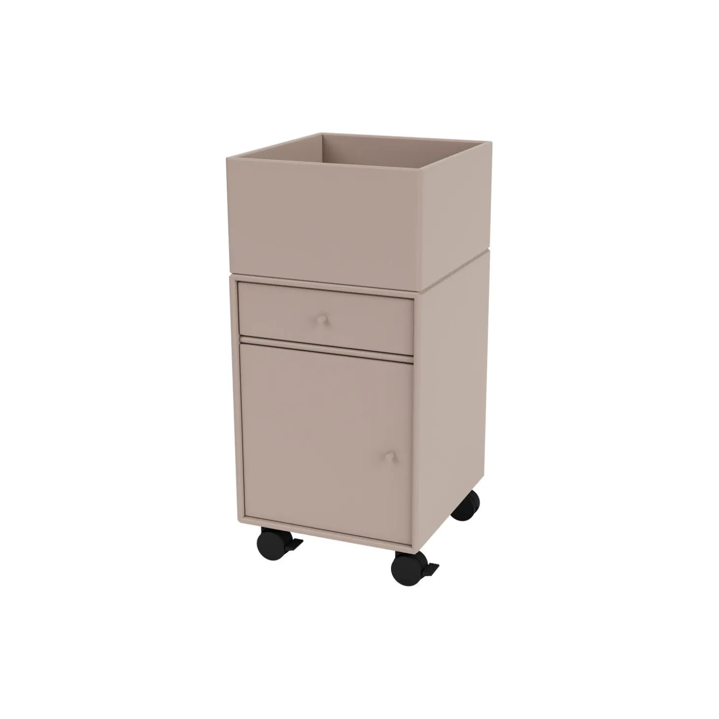 RUNNER er opbevaring på hjul, så du på hjemmekontoret eller i andre rum kan rulle det nødvendige udstyr hen, hvor du skal bruge det. Øverst er der kassen, åben i toppen, her kan du opbevare planter – alternativt, mapper, bøger, plakatrør eller lignende. Under topkassen er der en skuffe og et lille skab. RUNNER er dermed helt perfekt til ændre funktion og skabe forandring på det lille hjemmekontor.