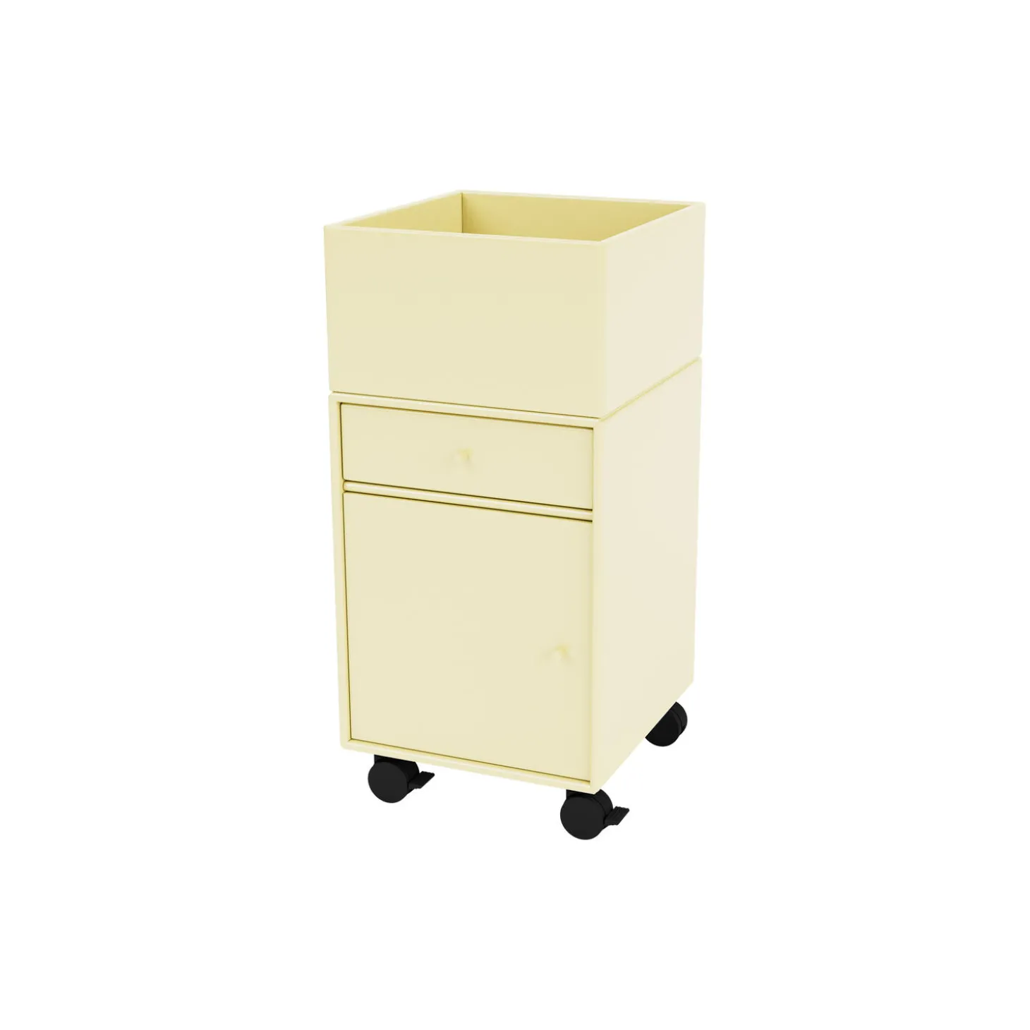 RUNNER er opbevaring på hjul, så du på hjemmekontoret eller i andre rum kan rulle det nødvendige udstyr hen, hvor du skal bruge det. Øverst er der kassen, åben i toppen, her kan du opbevare planter – alternativt, mapper, bøger, plakatrør eller lignende. Under topkassen er der en skuffe og et lille skab. RUNNER er dermed helt perfekt til ændre funktion og skabe forandring på det lille hjemmekontor.