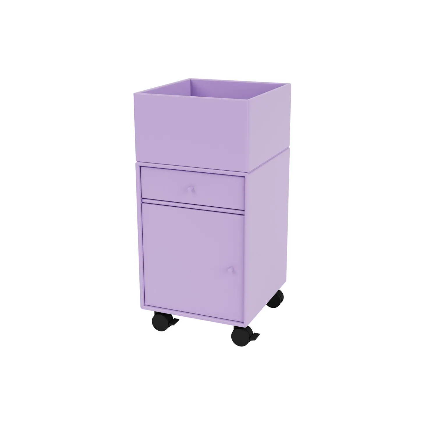 RUNNER er opbevaring på hjul, så du på hjemmekontoret eller i andre rum kan rulle det nødvendige udstyr hen, hvor du skal bruge det. Øverst er der kassen, åben i toppen, her kan du opbevare planter – alternativt, mapper, bøger, plakatrør eller lignende. Under topkassen er der en skuffe og et lille skab. RUNNER er dermed helt perfekt til ændre funktion og skabe forandring på det lille hjemmekontor.