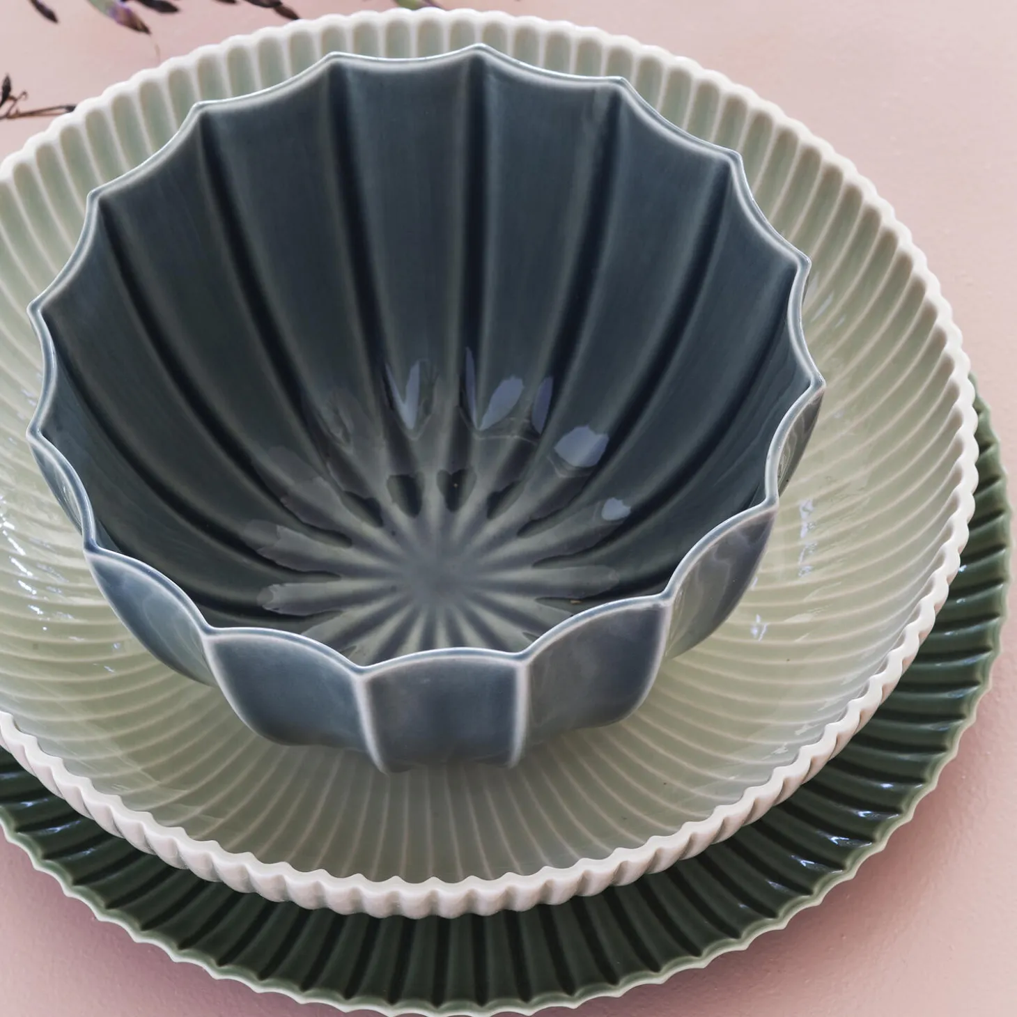 Kendetegnet ved vores tallerken er de buede former, der kun kan opnås ved håndlavet produktion. Plate kan bruges både som serveringsfad og som tallerken. Tåler opvaskemaskine og mikrobølgeovn.