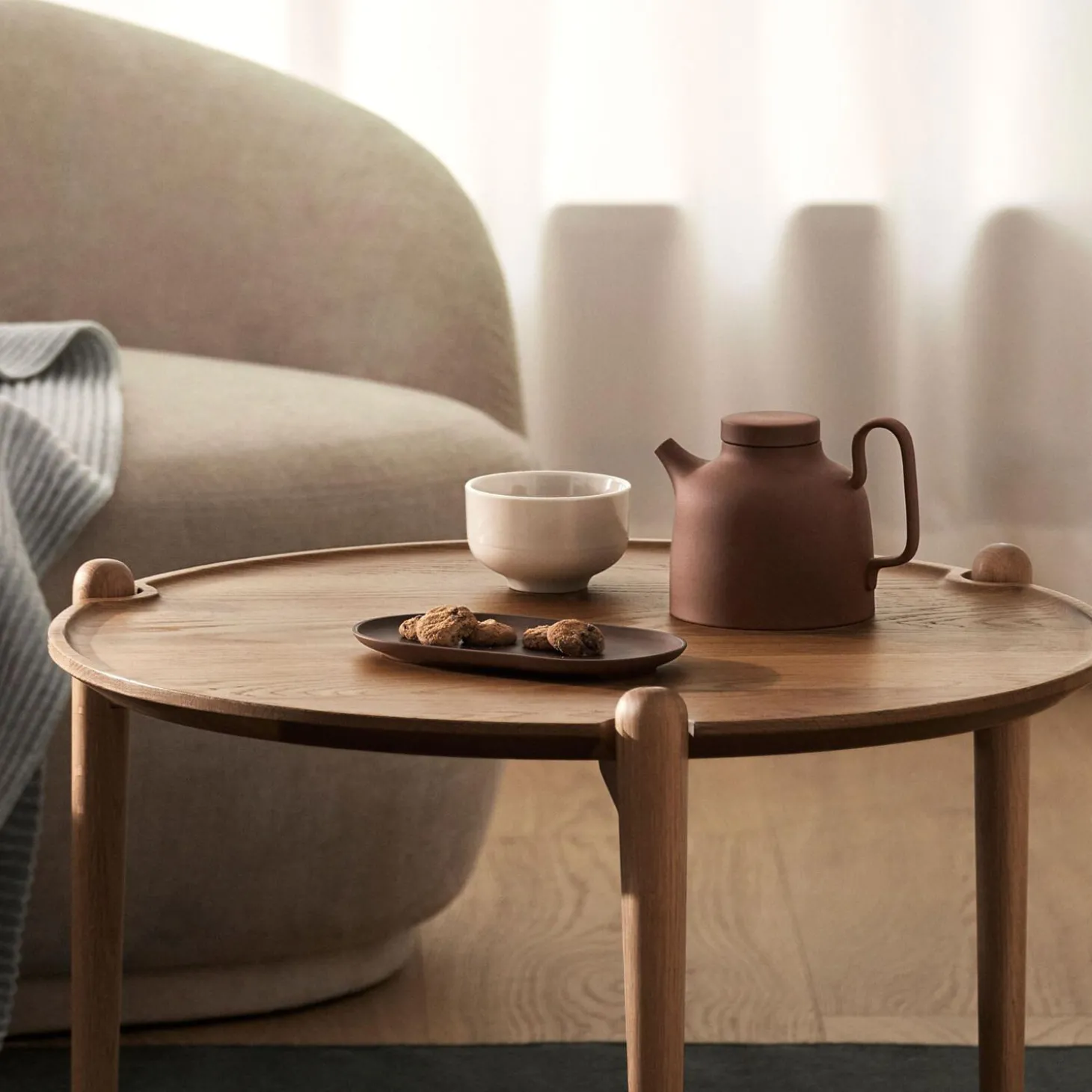 Carina Seth Andersson has once again managed to balance perfection and particularity in her new additions to Sand, her series of stoneware originally conceived for Nationalmuseum in Stockholm. The different objects are abstract yet familiar, alluding to age-old traditions refined to perfection. ‘There is a moment of surprise when you lift the lid,’ says Carina Seth Andersson. ‘The secrets of the chef unveiled! Together these earthenware objects will create a whole little landscape on the table.’ The trend to bring forward a multitude of different dishes for the table certainly does require the stage be set with a variety of vessels. Glazed on the inside, raw but softly polished on the exterior, the three black and clay-colored earthenware canisters are available in three different sizes.