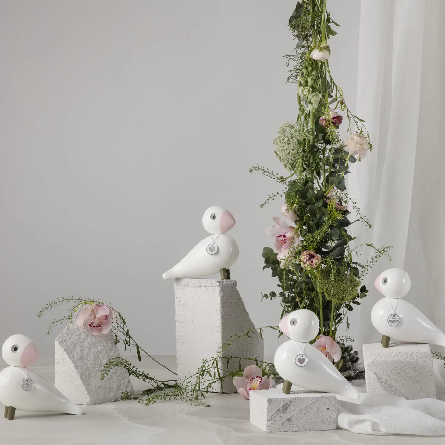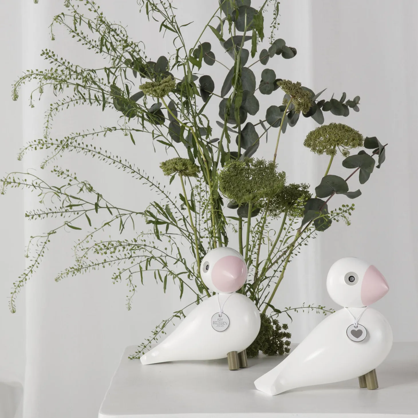 Kay Bojesen-sangfuglen Love spreder vingerne ud med et budskab om håb og omsorg og føjer et nyt kærligt kapitel til historien om Kay Bojesens originale fortællinger i træ, hvor Love Sangfugl med sin lyse glød og fredfyldte udstråling er et samlende lyspunkt i det nære. Den flødefarvede fjerpragt og det svagt lyserøde næb og matchende ben giver Love et fredfyldt og afbalanceret harmonisk look. Indvendig i øjet ses en varm sandfarve, der giver Hope et roligt og kærligt blik – og samme farve går igen på den snor, hvor Love bærer et emblem med en illustration af et sølvfarvet hjerte, der symboliserer det værdifulde i kærlighed og hjertelighed. Love måler 15,5 cm i højden og er fremstillet med stor præcision i FSC®-certificeret bøgetræ, der garanterer, at træerne til produktionen er plantet, dyrket og fældet ansvarligt. Ud over at sprede vingerne ud med livsbekræftende budskaber så donerer Kay Bojesen Denmark 50 kr. pr. solgt Sangfugl til en særligt udvalgt modtager, der er med til at skabe håb for fremtiden. Nyd Love som smukt og stærkt designelement hjemme hos dig selv, hvor Sangfuglen vil emme af hjertelighed og troen på en lys fremtid, eller brug den som en original og livsbekræftende gave til én, du har kær.