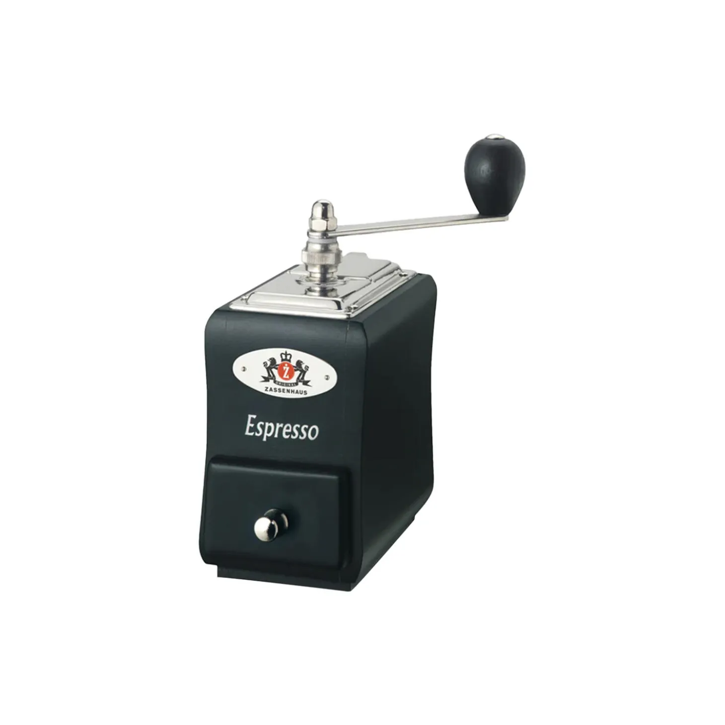 Kaffekværn, manuel, konisk kværn i specialstål, indtilling af kværnegraden sort. Zassenhaus har været en førende producent af manuelle kaffekværne siden 1867. SANTIAGO viser, hvordan det traditionelle firma kombinerer førsteklasses materiale, fremragende kvalitet og præcis funktion. Zassenhaus Santiago espressokværn er designet med en konisk kværn i robust specialstål, der maler så jævnt og fint, at du kan brygge den velkendte tyrkiske kaffe, som kræver ekstremt fintmalede bønner. Kværnegraden kan indstilles lige under espressokværnens håndtag, og den færdigmalede kaffe kan du let hælde over i din filterkurv direkte fra skuffen i kværnen.Zassenhaus kværne er nærmest uopslidelige
