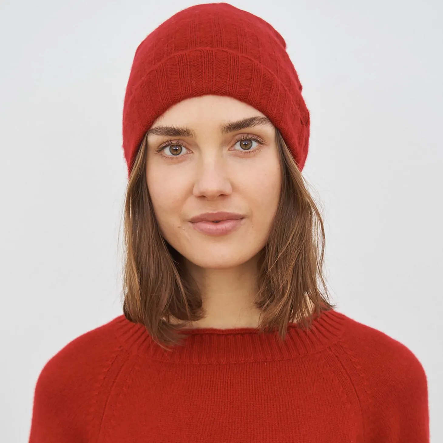 SARA-huen er en klassisk, men opløftet unisex-hue lavet af luksuriøs kashmir, som vil holde dig varm hele efteråret og vinteren. Den har en bred, ribstrikket kant, som er perfekt til at folde sammen. Huen passer smukt sammen med de matchende tørklæder; SARA, SARA MINI og HANNAH. SARA er certificeret håndlavet og fremstillet på en gammeldags håndstrikmaskine uden brug af elektricitet i vores sociale værksted i Kathmandu, Nepal. Kashmirfibrene er meget velholdte, da denne fremstillingsmetode er skånsom mod kashmiren og bevarer dens blødhed.