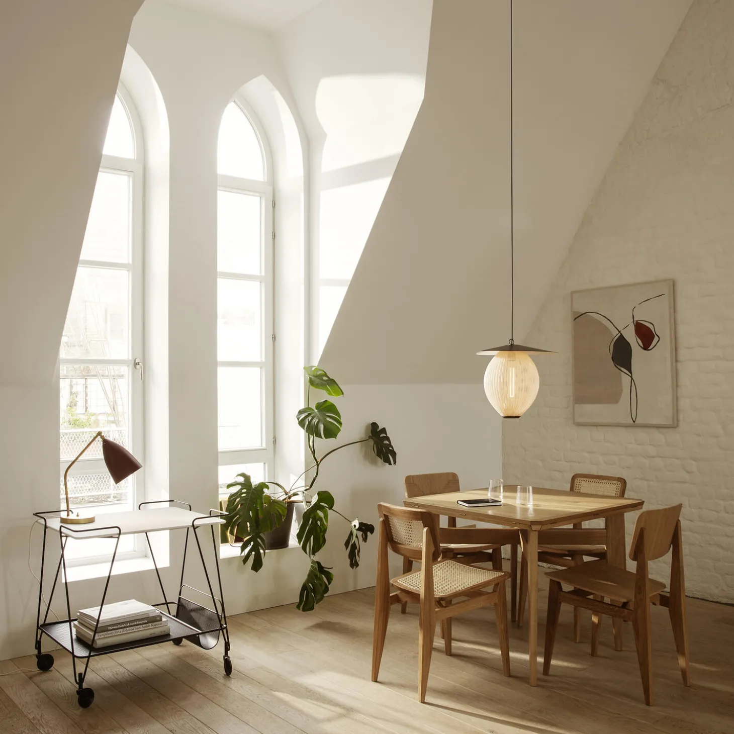 Satellite Pendant i stål og metal fra GUBI. Farve: cream white semi matt. Mål: H: 31,5 x B: 45 x D: 27 cm. Lyskilde: 6-10W LED E27. Design: Mathieu Matégot.