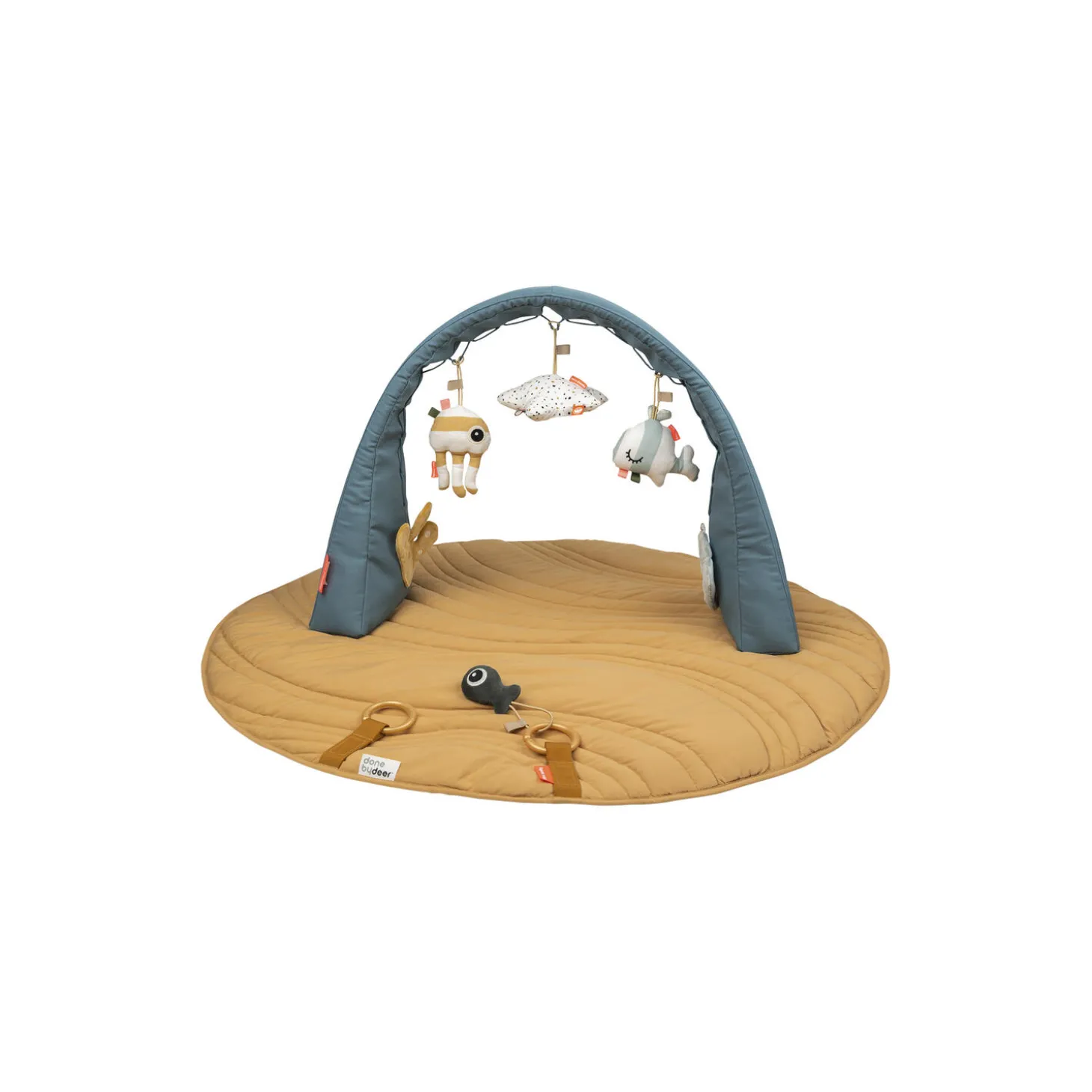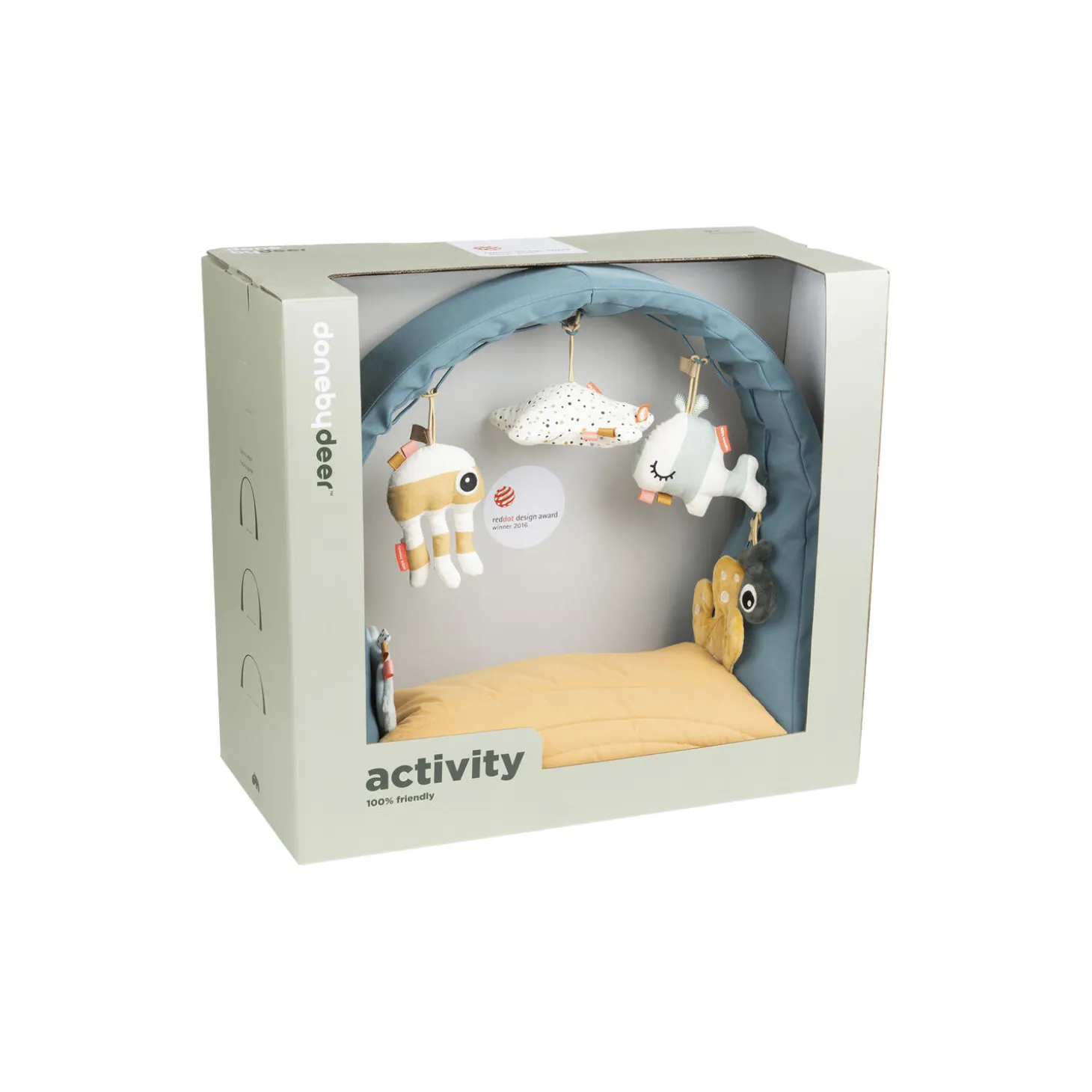 Sea friends aktivitets legetæppe i 100% polyester med fyld af EVA-skum, kvartssandsække, polyesterfibre samt legetøj i 100% bomuld med 100% polyesterfibre fra Done By Deer.Farve: favemix. Mål: H: 39 x L: 23 x B: 44 cm.
