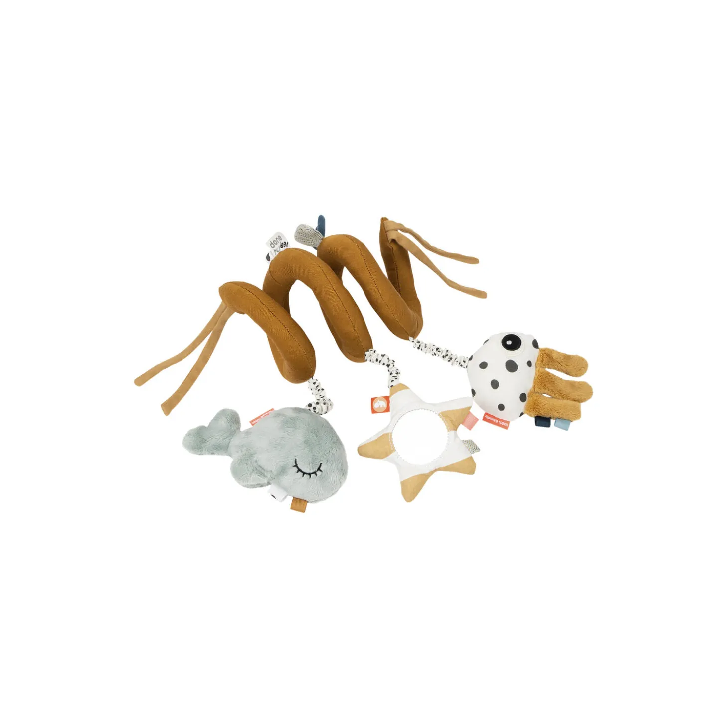 Sea friends aktivitetsspiral i 100% polyester og legetøj i 50% bomuld 50% polyester med fyld i 100% genanvendelige polyesterfibre og ringe i 100% PP fra Done By Deer.Farve: sennep. Mål: H: 20 x L: 33 x B: 4 x Ø 10 cm.