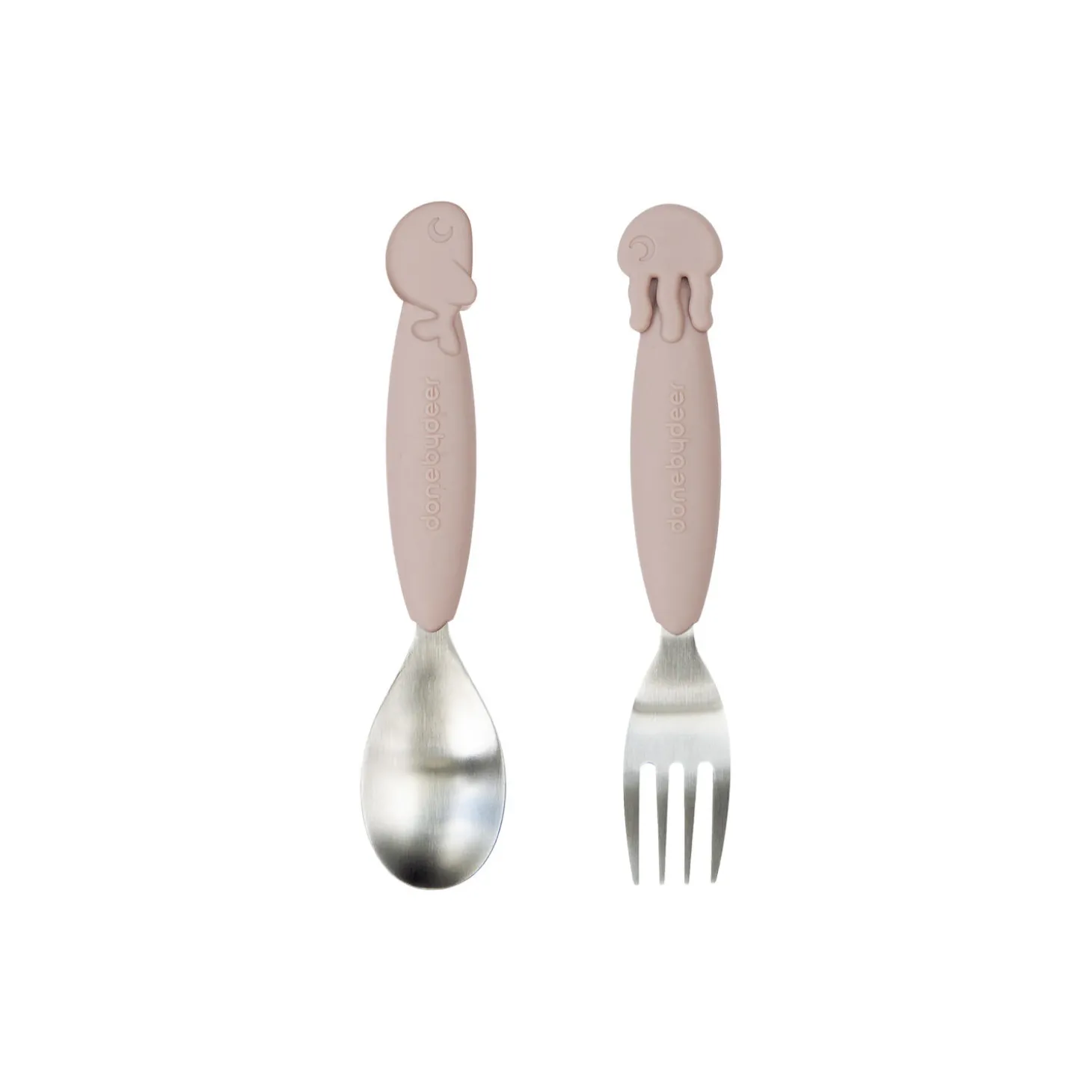 Sea Friends YummyPlus ske & gaffel sæt i rustfrit stål og 100% fødevarekvalitet silikone fra Done By Deer.Farve: pudder. Mål: H: 1,3 x L: 14 x B: 3 cm.