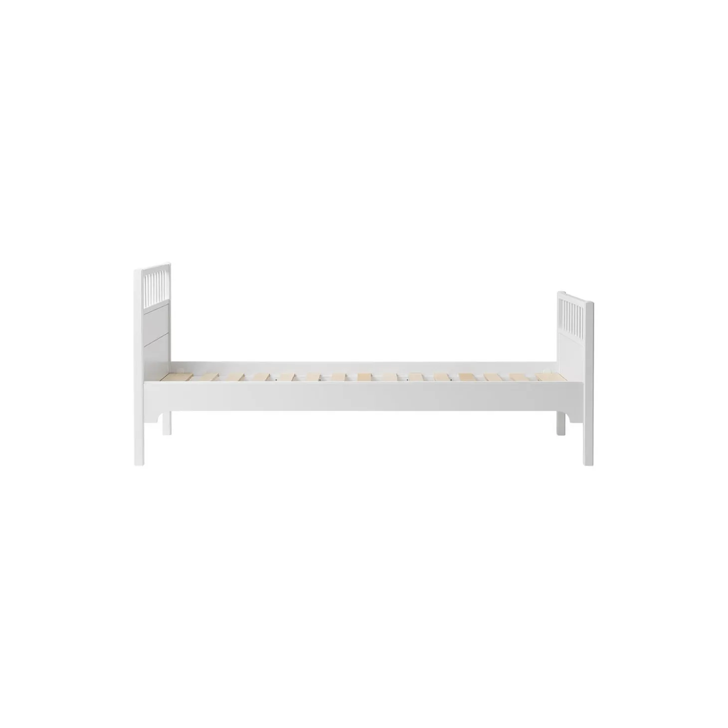 Her er sengen til teenageren eller til det stilfulde gæsteværelse, hvor der skal kræses lidt ekstra for den overnattende gæst.Det klassiske, skandinaviske udtryk giver plads til at kunne sætte sit eget præg på sengen. Om end der skal blomster eller striber på puderne, så følger sengen med og lader teenageren udtrykke sig.Sengens to gavle er asymetriske, og den høje gavl danner et sengegærde, der giver sengen et smukt og luksuriøst udtryk.Sengen er en del af Seaside Classic serien, der er designet i en fin og nordisk stil. Små, enkle detaljer understreger det tidløse design, der passer ind i de fleste hjem.Seaside Classic serien er fremstillet af birketræ og MDF, der er konstrueret træ, der består af 60% birk, 20% fyrretræ og 20% asp træ. MDF er meget stærkt og holdbart.De ikke-synlige skruer giver sengen et rent og eksklusivt design og er særligt kendetegnende for Oliver Furniture. Designet er let og fint og holder fra generation til generation.Serien er produceret i Europa og overholder de strenge EU-krav for sikkerhed og sundhed. Produkterne er malet med ikke-giftig, vandbaseret maling.Bæreevne (statisk vægt): 120 kg
