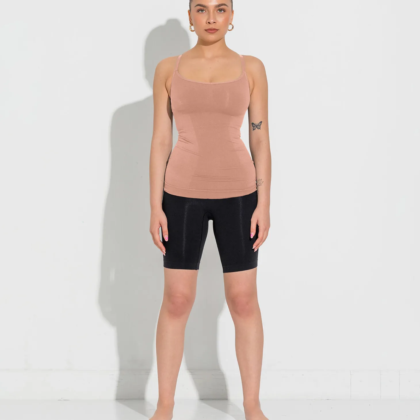 Support level: StrongShaping Cami Top med justerbare skulderstropper – Et essentiel wardrobe item. Perfekt til både hverdag og fest.Funktionalitet og egenskaber:Justerbar skulderstroppe: Tilpas efter behov for maksimal komfort. De aftagelige stropper på ryg giver flexibilitet til at krydse og designe dit edelig look så ryggen matcher dit ønske. Bryst-zone: indbygget plads til barmen. Giver naturlig støtte. ingen irriterende sømme eller mærker. Ryg-zone udskæring med kompression zones der skaber en udglattende effekt omkring ryg og over BH kanter. Tummy Kompression Zone: Via en særlig strikke teknik har vi skabt kompression zoner hen over talje, mave og lænden. Dette skaber udglattende effekt og høj komfort.Åndbarhed: vores garner er nøje sourcet fra vores leverandør i Italien. Garnet er spundet med optimal fokus komfort og åndbarhed. LYKKELAND atelier seamless SHAPEWEAR produkter: Shapewear fra LYKKELAND ateliér er yderst komfortable samtidig med at det er super funktionelt. Shaping Produkterne knus-krammer kærligt din krop og dine naturlige kurver, og skaber en visuel glattere contour når du har produkterne på. Støtte og løft til bryst og baller. Udglattende effekt på ryg og mave. Anti elektrisk og perfekt under alle dine outfits – kan anbefales at styles under produkter der er lavet af tyndt stof der normalt vil klistre mod din hud. Oplev optimal pasform af dine yndlings outfits når du har LYKKELAND atelier shaping produkter herunder. Oplev også yderst behagelig støtte og support ved ekstrem “blød” hud, mummy tummies og overskydende hud ved vægt tab.How to wear: Når du påfører dig shapewear – skal du ALTID tage produktet på nedefra – også ved denne Cami Top. Når du påfører produktet skal fødderne først, et ben af gange, træk produktet op til henover knæ og lår og træk derefter med samme forsigtighed som når du påføre dig nylon strømper. Når du har fået produktet på kan du med fordel rette på barm under shapewear så du føler den helt rigtige komfort og støtte. Vaske anvisning: Vaskes på 30 grader. Vaskes med vrangen ud, meget gerne i vaskepose. Undgå tørretumble, samt skyllemiddel for længere holdbarhed af dine LYKKELAND ateliér shaping produkter. Materialet: High-end Italienske garner produceret i Italien, 80% polyamid 20 % ElastaneProduceret i Tyrkiet