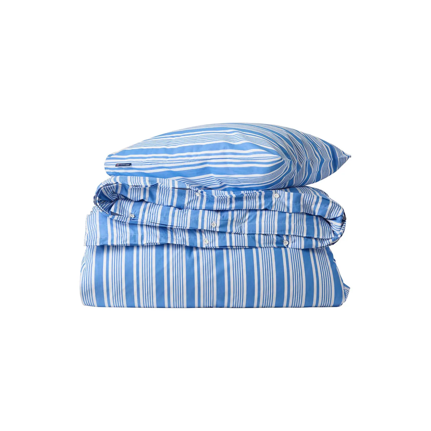 Forkæl dig selv med den tidløse elegance i Lexingtons sommerkollektion med dette sengesæt i garnfarvet bomuldspoplin. Dynebetrækket har et frisk og blødt stribet design og gummiknapper med Lexington-logo, mens pudebetrækket har en kuvertlukning. Det er Oeko-Tex-certificeret og fremstillet af 100% bomuldspoplin, og dette sæt i blå og hvid bringer stil og komfort til dit soveværelse.
