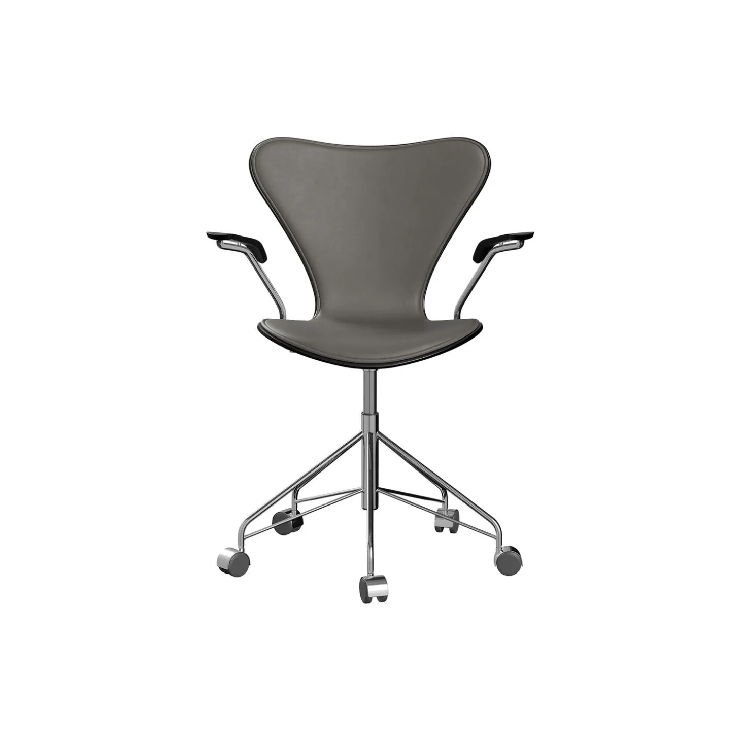 Serie 7™ stolen, designet af Arne Jacobsen i 1955, er et ikon inden for moderne møbelhistorie. Dens unikke form er tidløs, utrolig alsidig og udstyret med masser af personlighed og karakter uden at være visuelt overvældende. Stolen er lavet af ni lag formpresset finér, der giver styrke, fleksibilitet og holdbarhed til trods for dens slanke udseende. 7’eren, som den også kaldes, er det mest populære møbel i Fritz Hansens stolekollektion. 3217 kombinerer Arne Jacobsens originale armlændesign med et højdejusterbart drejestel og bløde, holdbare dobbelt-hjul, der fås både hårde eller bløde til forskellige underlag. Resultatet er en fleksibel kontorstol, der passer perfekt både til hjemmet og kontoret.