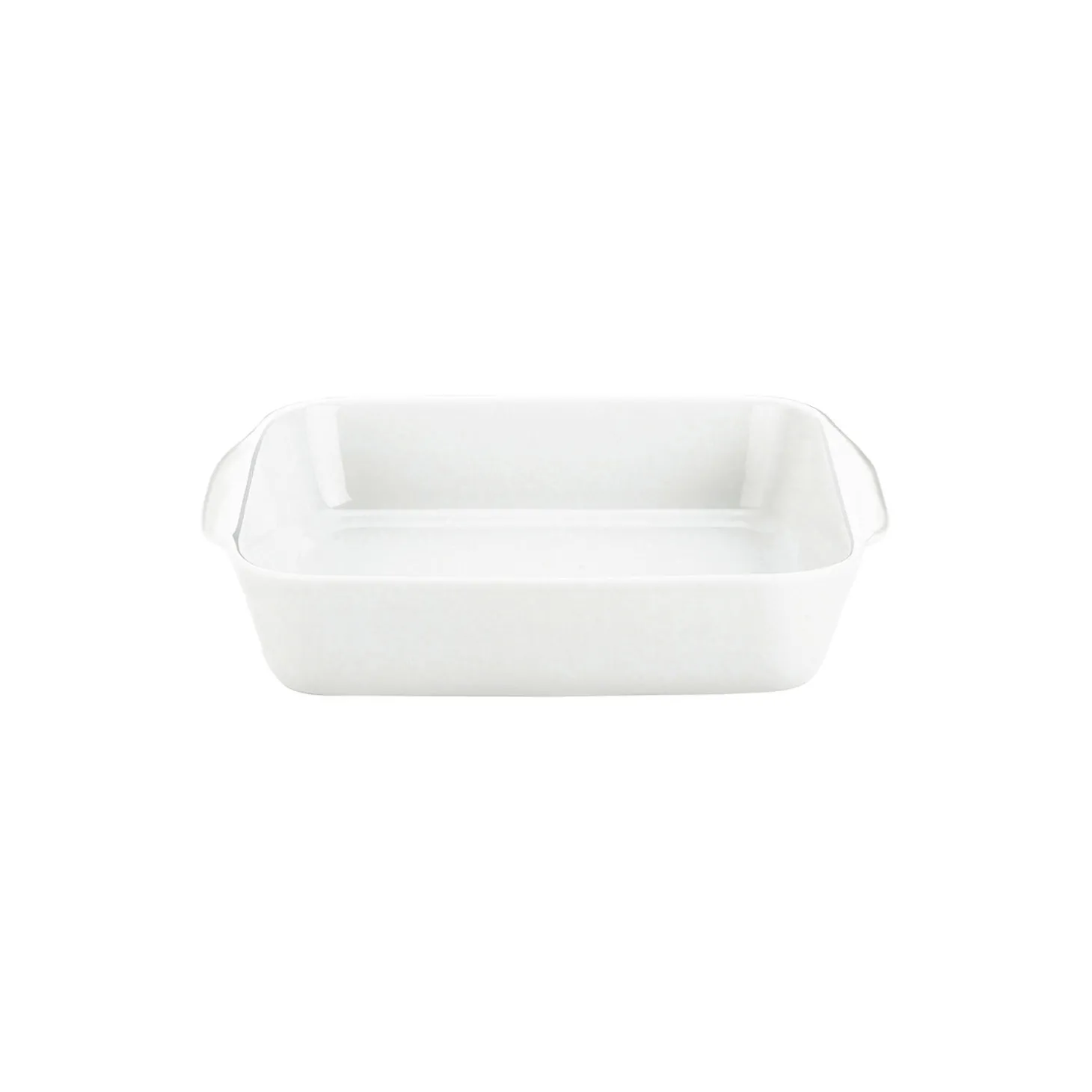 Kvadratisk fad på 14 x 14 cm med håndtag til ovnretter og til servering.