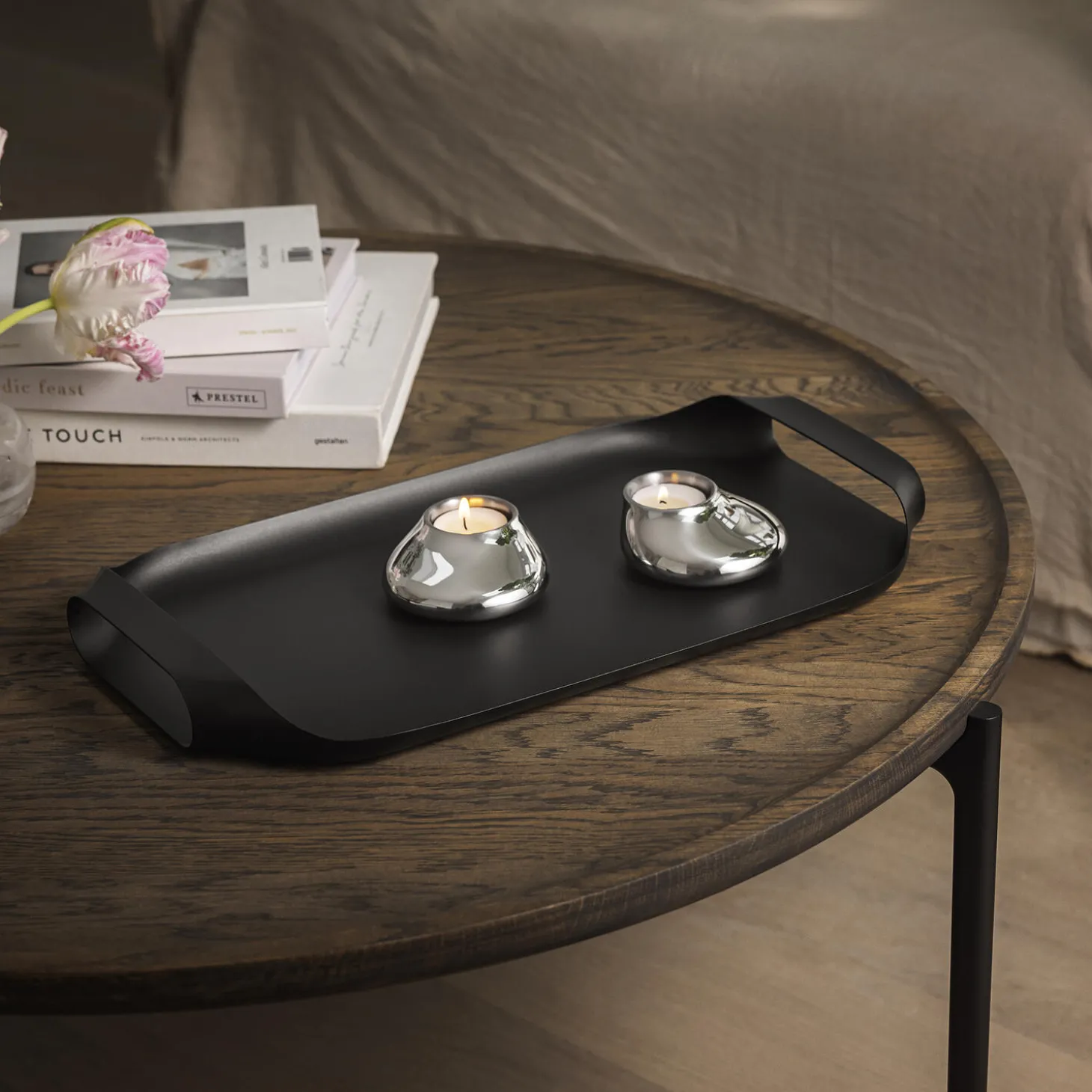 Den elegante serveringsbakke gør enhver servering indbydende, uanset om det er morgenmad i sengen eller kolde drinks på terrassen. Bakken får sit rene og glatte udtryk ved at være formet af ét stykke stål uden synlige samlinger. De lavt placerede greb øger stabiliteten og balancen, selv når bakken er fyldt. For ekstra sikkerhed kan du tilkøbe en skridsikker silikonemåtte. Med sit kompakte og flade design kan bakken nemt opbevares i de fleste køkkenskuffer. Udover at være praktisk til servering fungerer bakken også som en dekorativ del af indretningen – perfekt til at arrangere nips, lysestager og blomster.