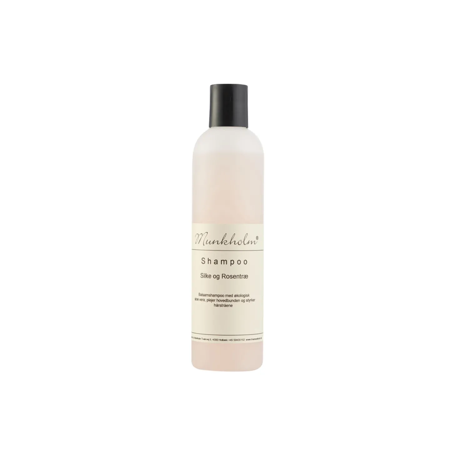 Shampoo med aloe vera fra Munkholm. Plejer hovedbunden og styrker hårstråene. Duft: rosentræ. Indeholder: 250 ml.