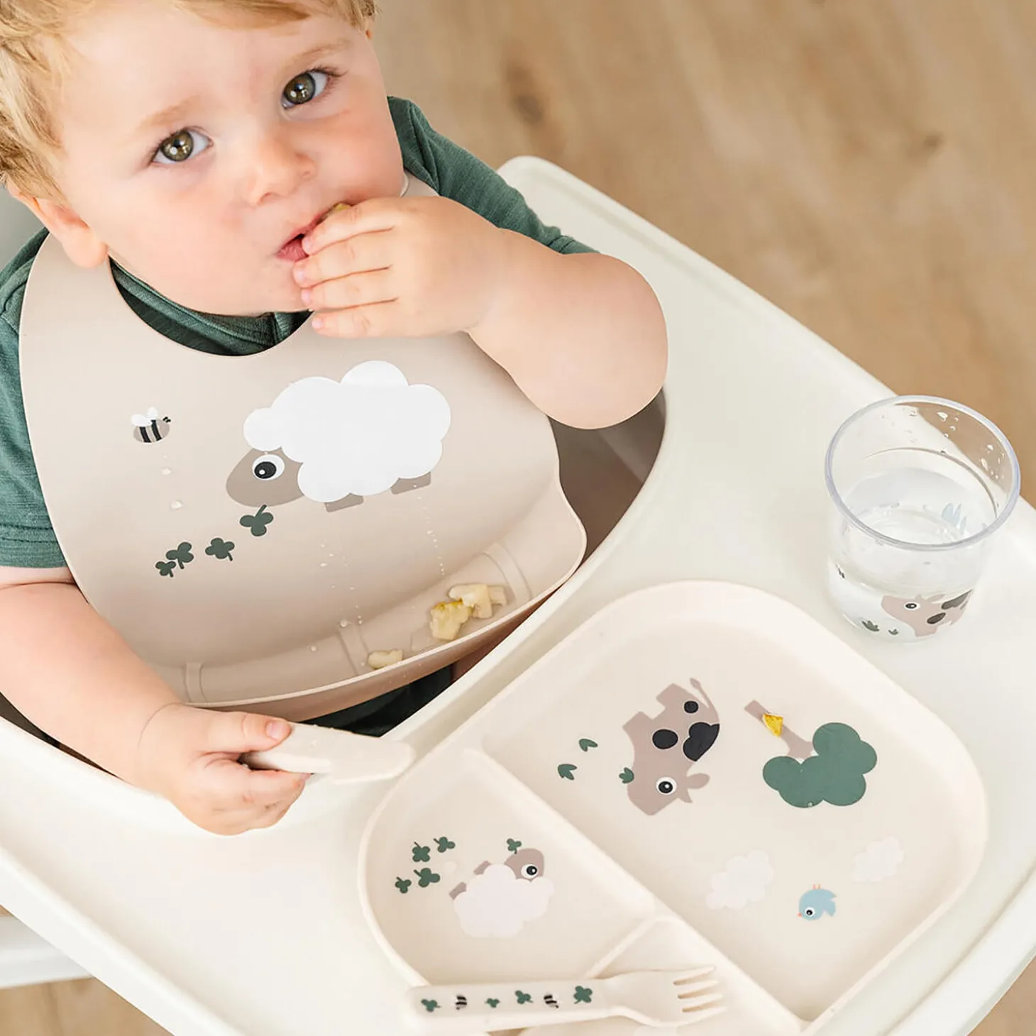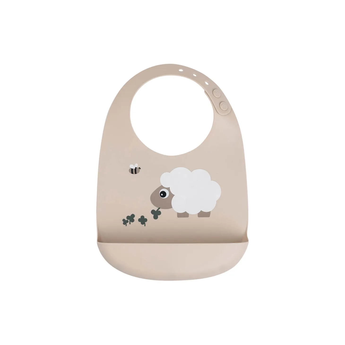 • Hagesmækken har en lomme til at fange tabt mad• Justerbar hals med dobbelt lukning for en god pasform• Blød silikone gør den behagelig for dit barn at have på• Fremstillet af fødevaregodkendt silikone, fri for BPA og andre skadelige stoffer• Nem at tørre af eller vaske i opvaskemaskinen• Fin sandfarve med et underholdende motiv af Sheepy