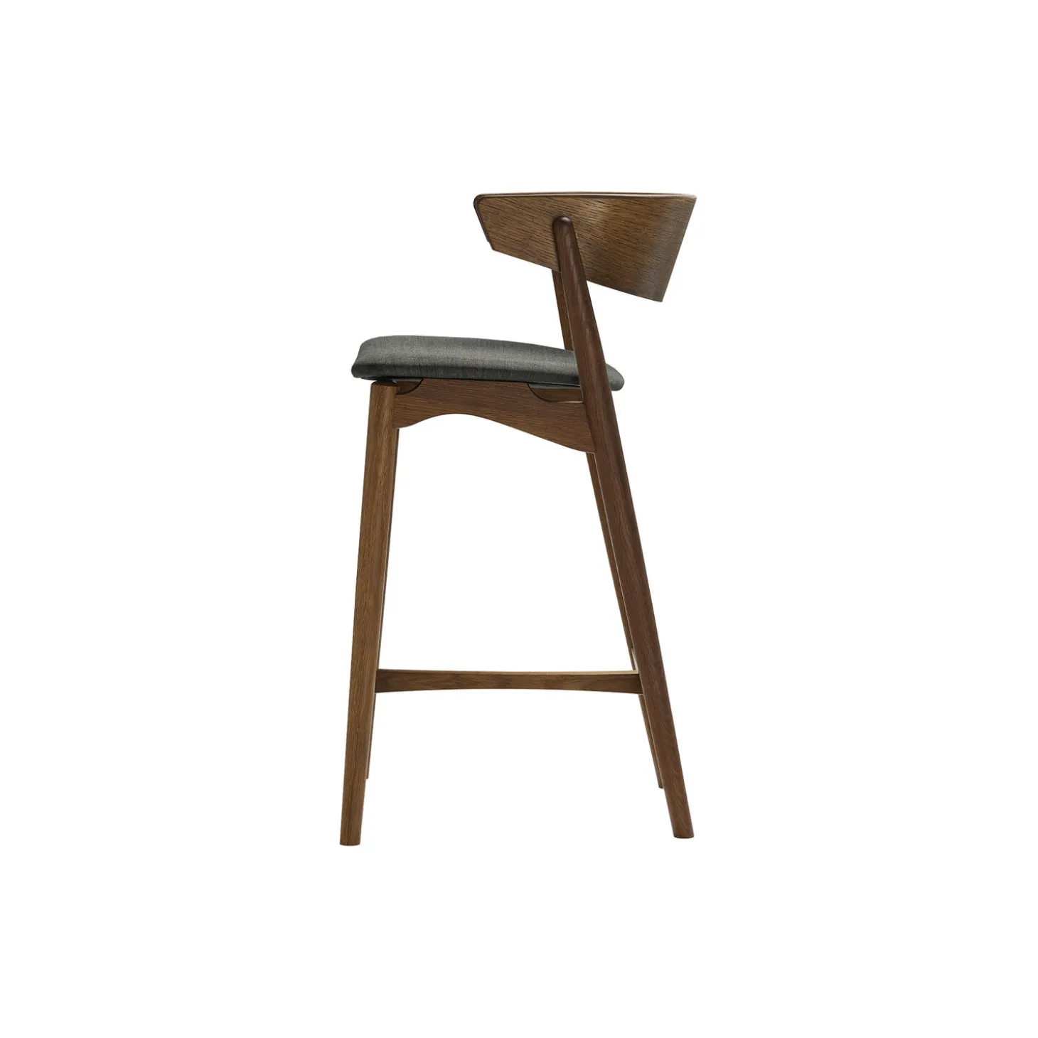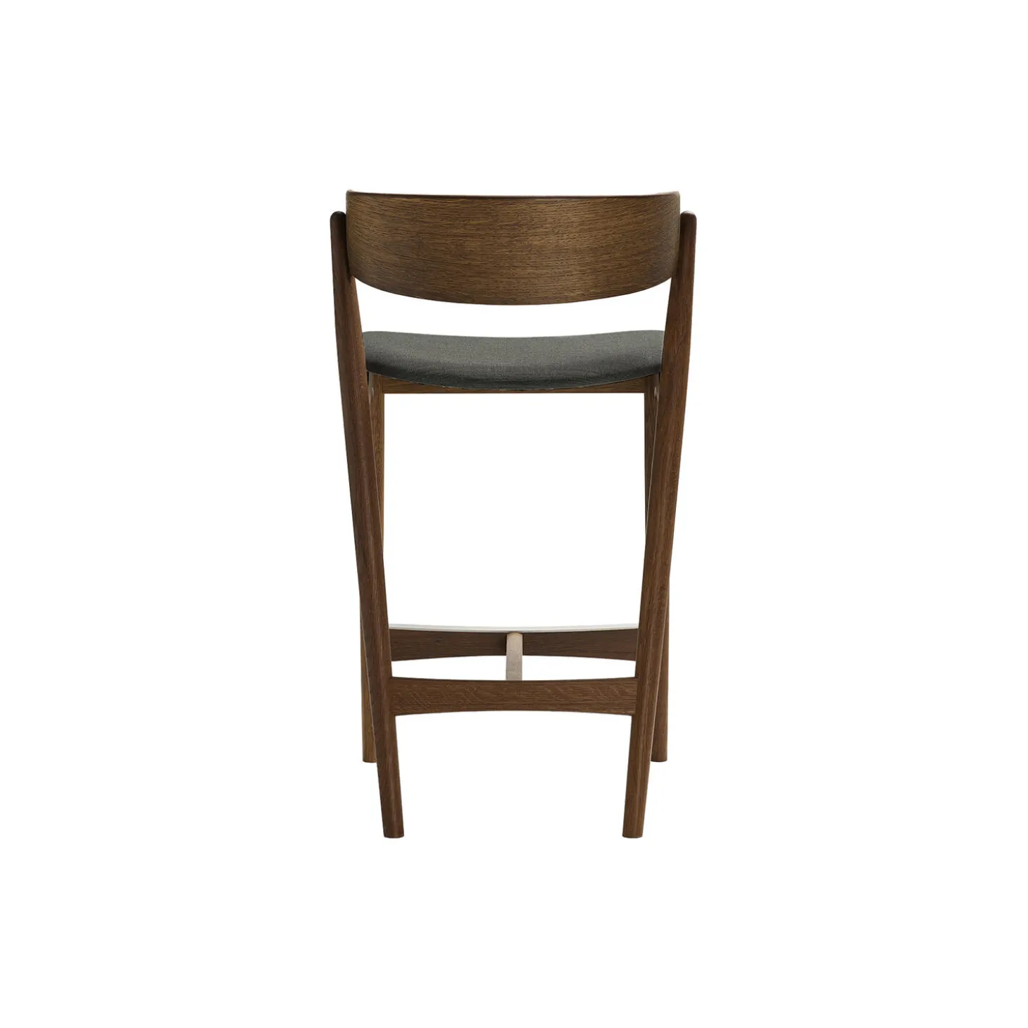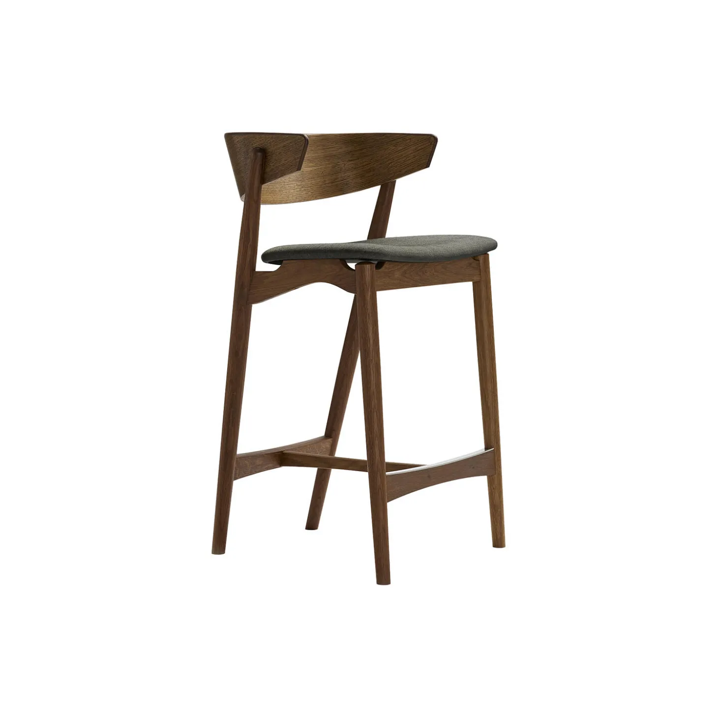 Sibast No 7 barstol i røget olieret eg med sæde i 133 Remix tekstil af Kvadrat fra Sibast Furniture. Farve: mørkegrå. Mål: 90×54 cm. Siddehøjde: 65 cm. Design: Anna & Ditlev Sibast.