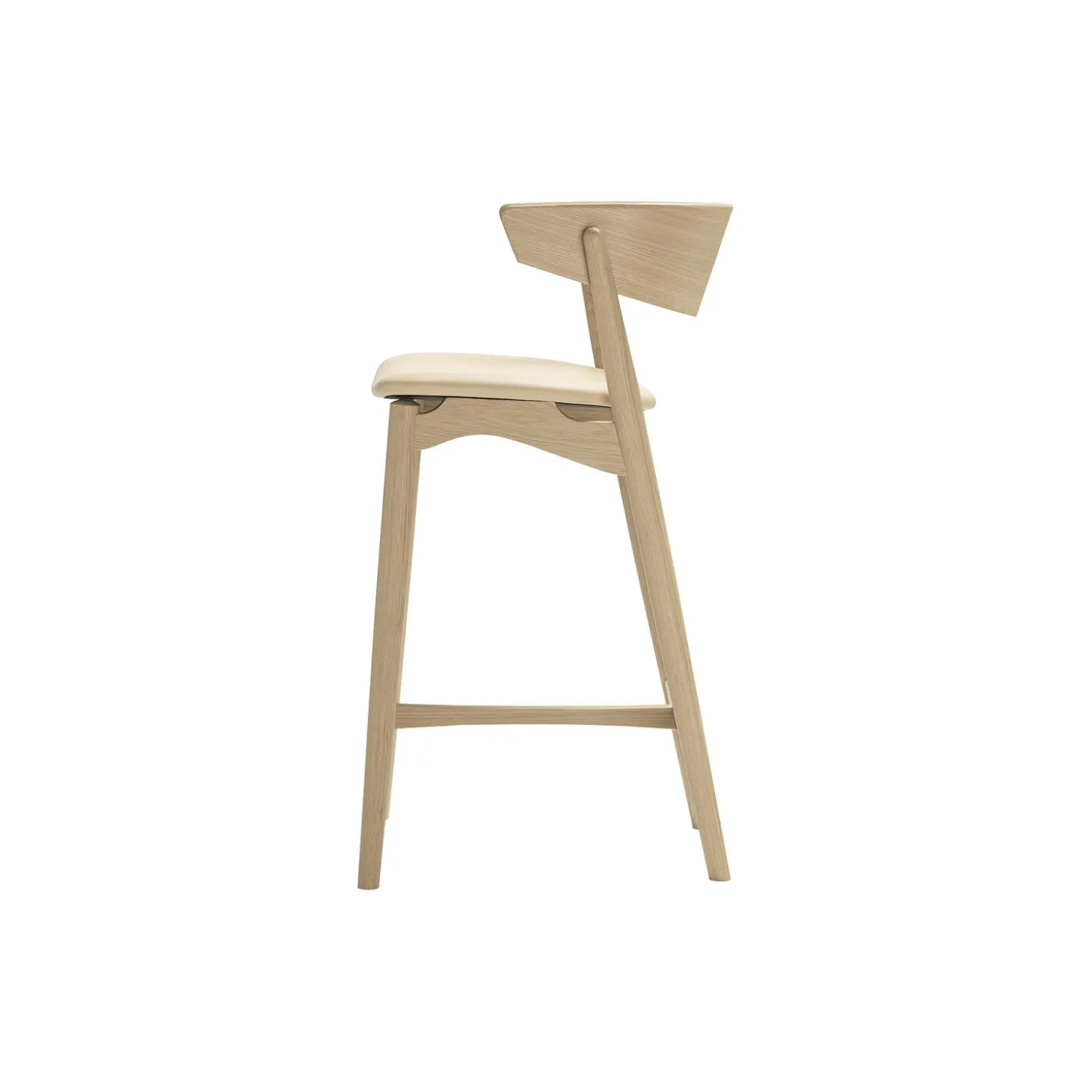Sibast No 7 barstol i sæbebehandlet eg med sæde i Spectrum semianilinlæder af Sørensen Leather fra Sibast Furniture. Farve: honey. Mål: 90×54 cm. Siddehøjde: 65 cm. Design: Anna & Ditlev Sibast.