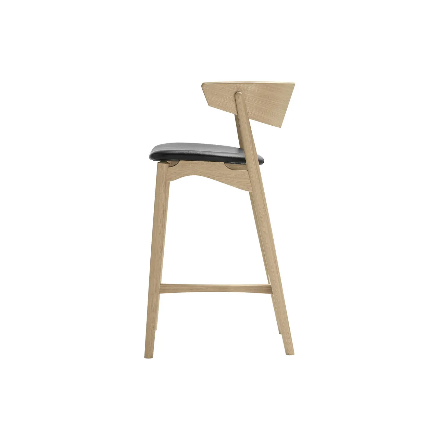 Sibast No 7 barstol i sæbebehandlet eg med sæde i Victory beskyttet læder af Sørensen Leather fra Sibast Furniture. Farve: sort. Mål: 90×54 cm. Siddehøjde: 65 cm. Design: Anna & Ditlev Sibast.