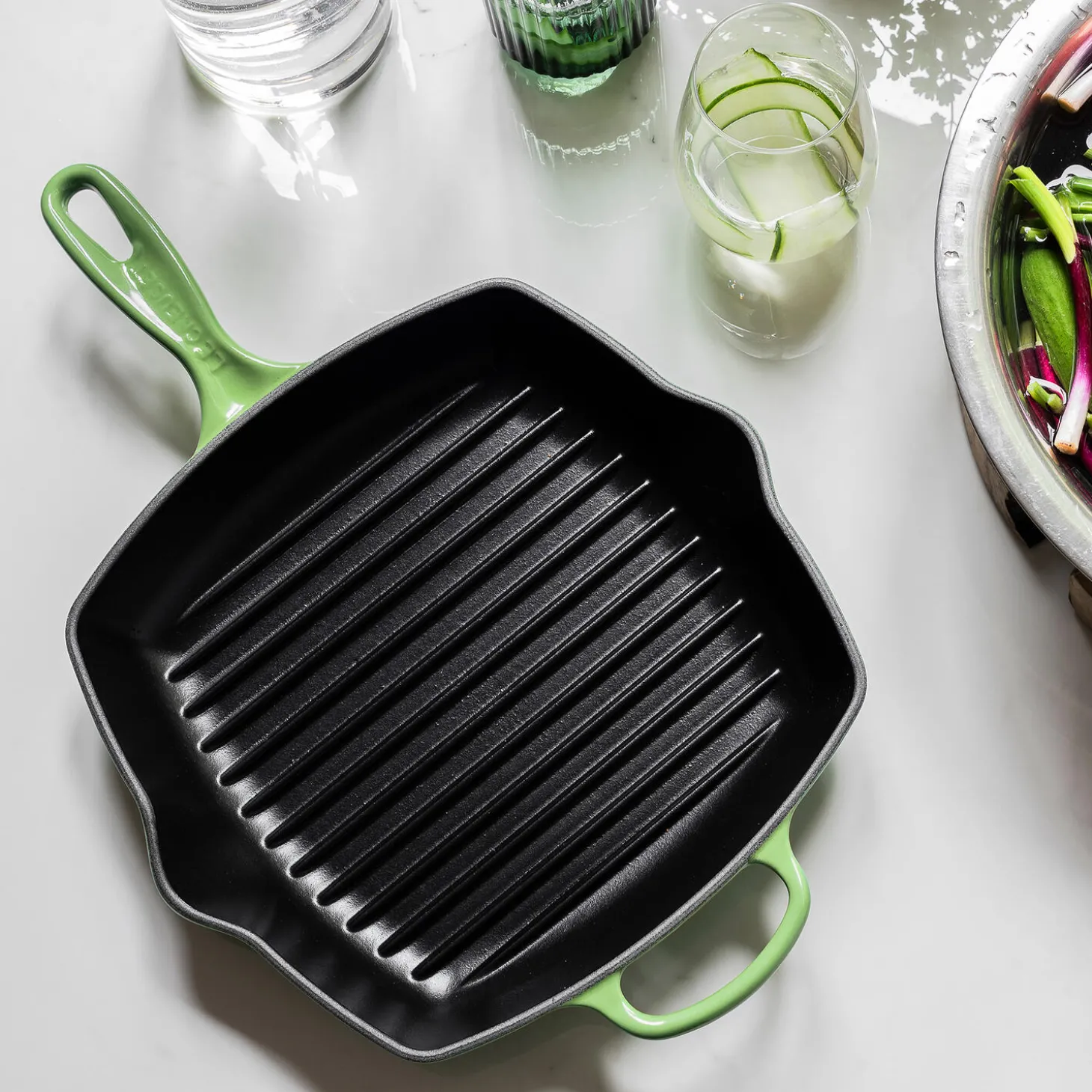 Vores kendte grillpande i støbejern forsegler hurtigt overfladen på din mad og holder på den gode saft og smag. Den er perfekt til lækker og sund madlavning – fedtet ledes simpelthen væk og samles mellem rillerne. Dette alsidige produkt vil også gøre det nemt for dig at tilberede hurtige måltider med kød, fisk og grøntsager. Egnet til følgende varmekilder: ovnens grill, ovn, elektrisk, keramisk kogeplade, gas og induktion.