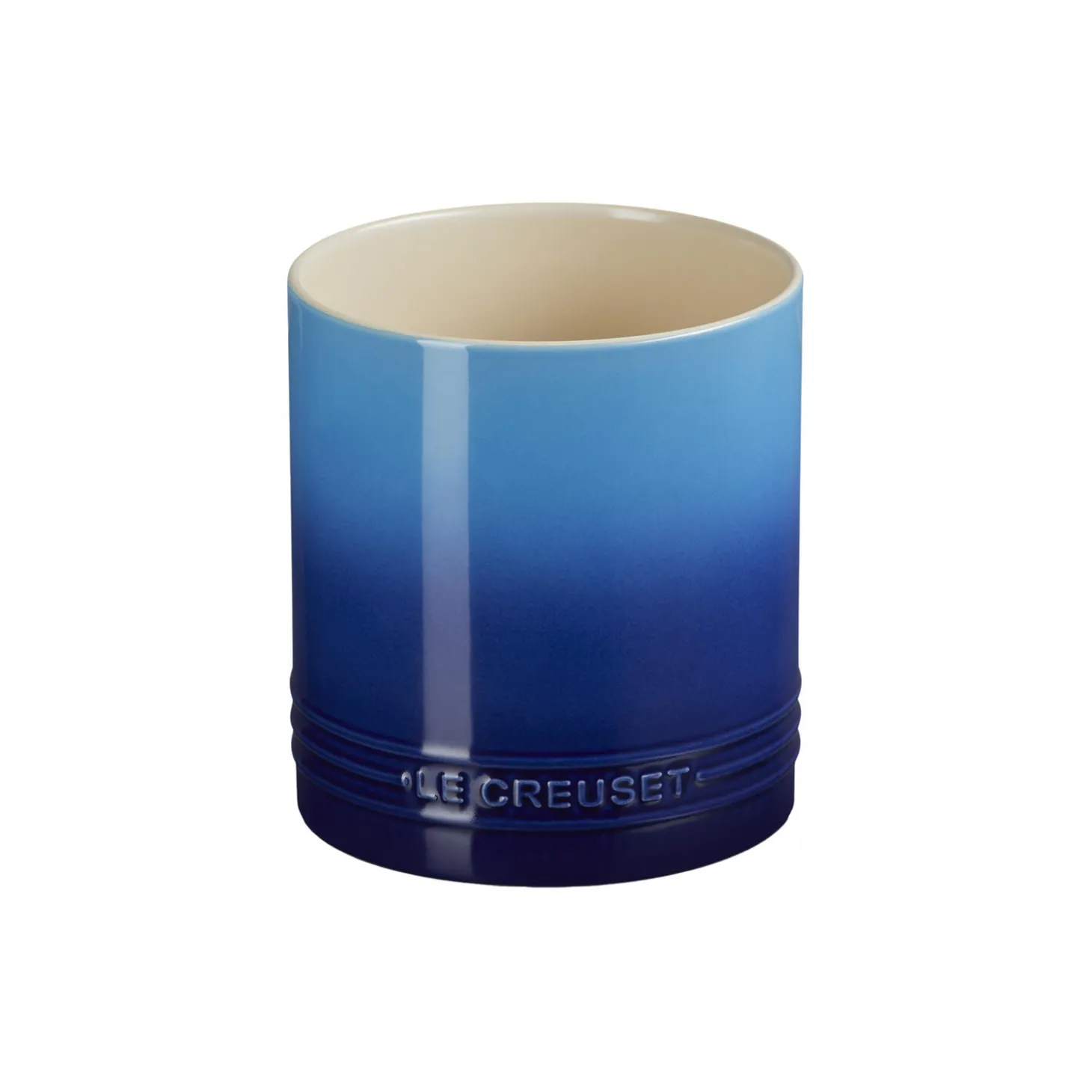 Få ekstra opbevaringsplads i køkkenet og vis dine køkkenredskaber frem med stil med denne krukke i stentøj. Den har den perfekte størrelse til at holde skeer og køkkenredskaber inden for rækkevidde, når du laver mad. Krukken tåler opvaskemaskine og er nem at rengøre.Le Creusets stentøj er fremstillet af særlige lertyper og brændt ved de højeste temperaturer, hvilket gør det stærkt og holdbart. Den forseglede struktur giver enestående varmebestandighed og fastholder en jævn temperatur under madlavning. Takket være Le Creusets ekspertise inden for emaljering er stentøjet også ridsefast og helt hygiejnisk, uden at absorbere hverken lugt eller smag. Fås i et bredt udvalg af livlige farver.Alt stentøj fra Le Creuset er sikkert at bruge i mikroovn, fryser, køleskab, opvaskemaskine, ovn og grill. Den højeste ovnfaste temperatur er 260°C, og der bør holdes en afstand på 6,5 cm mellem oversiden af produktet og varmelegemet.Dækket af en 10-års garanti.