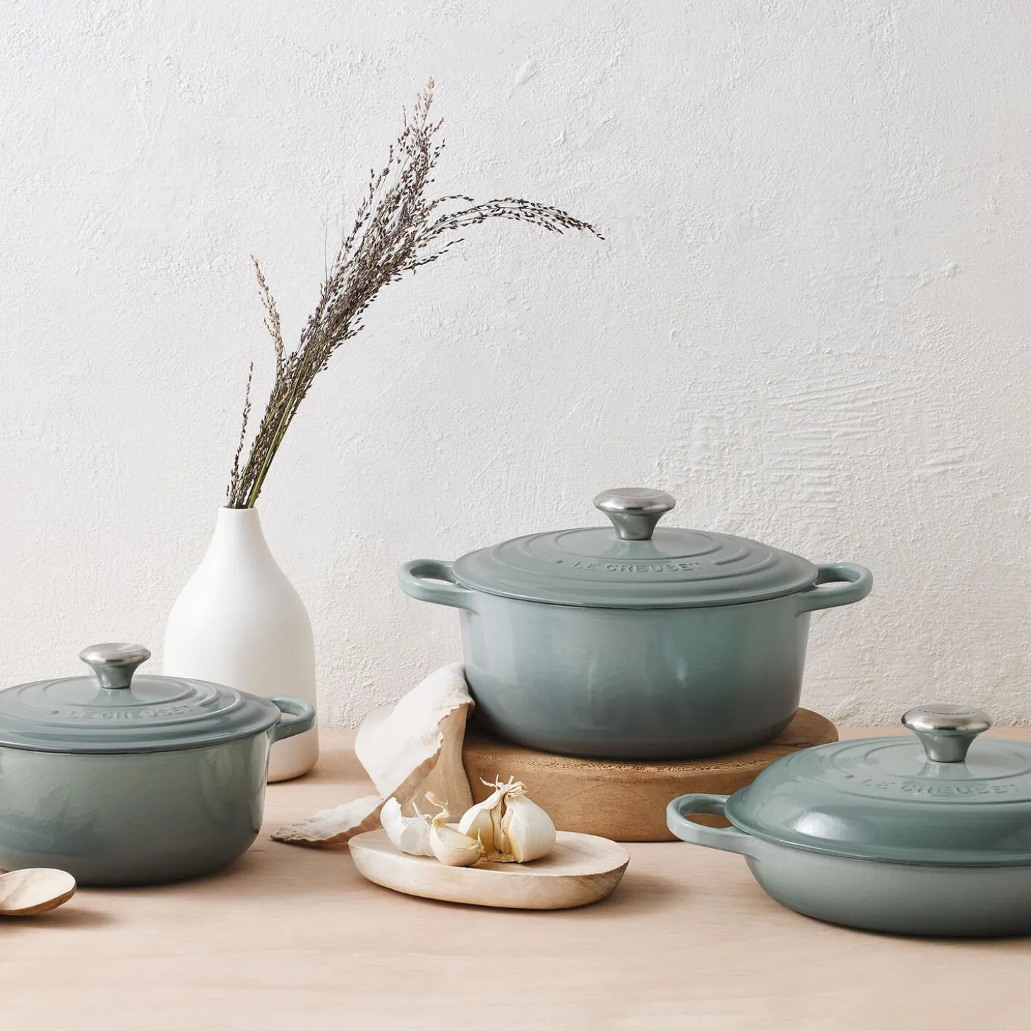 Le Creuset-gryden er en kulinarisk klassiker, som har været elsket af kokke i hele verden i næsten et århundrede. Denne klassiker er perfekt til stuvninger, stege, supper, gryderetter og bagning. Du behøver kun dette ene, ikoniske produkt til alle dine forskellige og mindeværdige måltider, der får tænderne til at løbe i vand. Låg med rustfri stål- eller fenolknop tåler opvaskemaskine. Låg med guld-, iriserende-, kobber- og sort nikkelknop skål håndvaskes for at bevare deres finish.