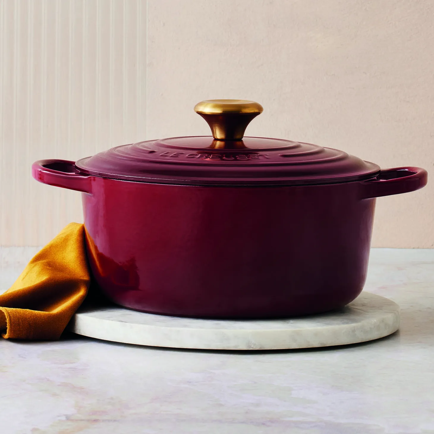 Le Creuset-gryden er en kulinarisk klassiker, som har været elsket af kokke i hele verden i næsten et århundrede. Denne klassiker er perfekt til stuvninger, stege, supper, gryderetter og bagning. Du behøver kun dette ene, ikoniske produkt til alle dine forskellige og mindeværdige måltider, der får tænderne til at løbe i vand. Låg med rustfri stål- eller fenolknop tåler opvaskemaskine. Låg med guld-, iriserende-, kobber- og sort nikkelknop skål håndvaskes for at bevare deres finish.