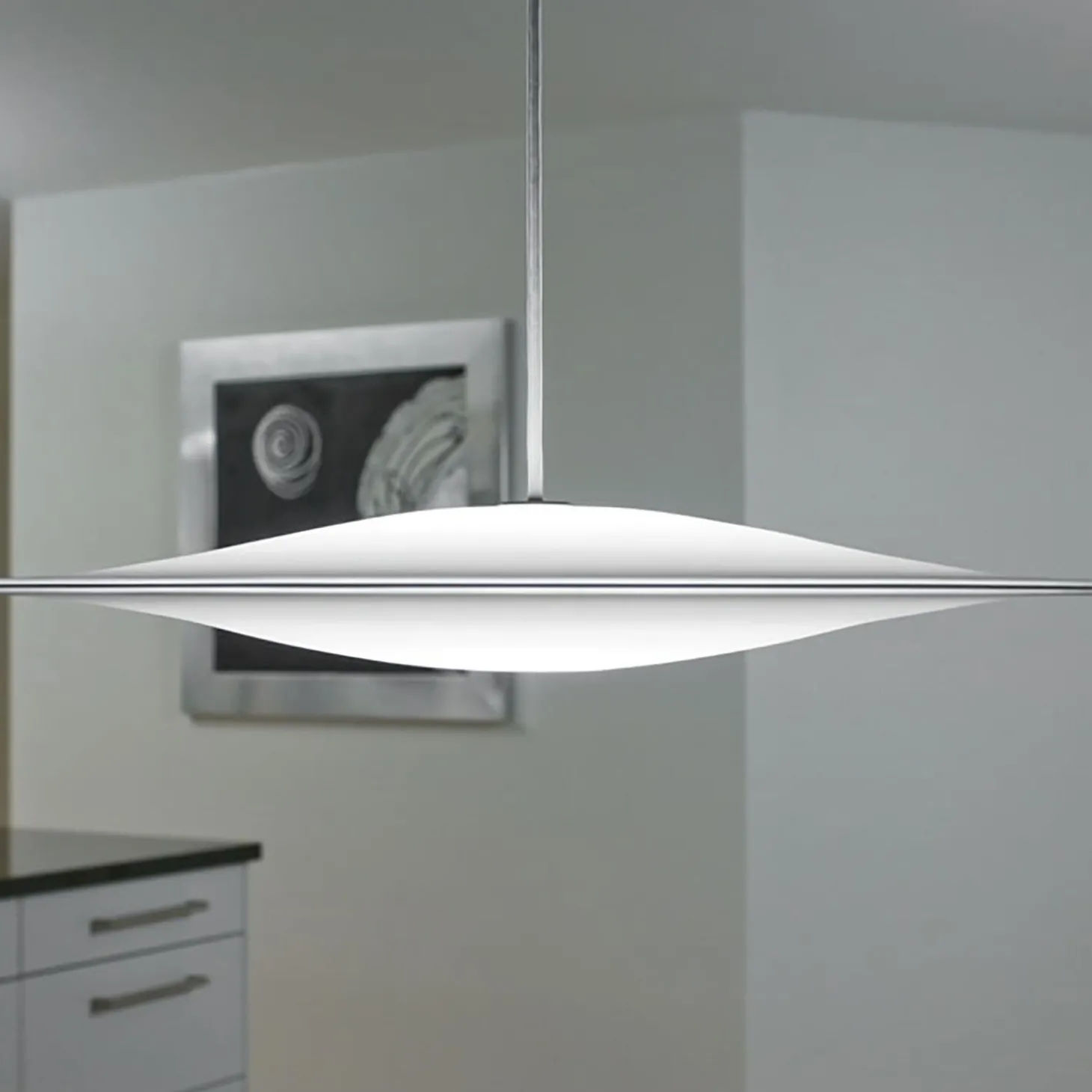 A tribute to the Sine Curve 1967. Poetry in glass, the Sinus lamp was originally designed in 1967 and attempted to be made in plastic. But Piet Hein himself was not satisfied with the result until he saw it in glass. The floating shapes of the Sinus lamp epitomize the clean, Scandinavian lines that we know from the golden age of design. The sine curve was chosen as inspiration because it is a mathematically harmonious shape, but also because it is technically ideal for lighting. The lamp’s curved shapes ensure that the light is strong on exactly what needs to be illuminated, while the light towards the eye and the surrounding space is glare-free and exceptionally beautiful.