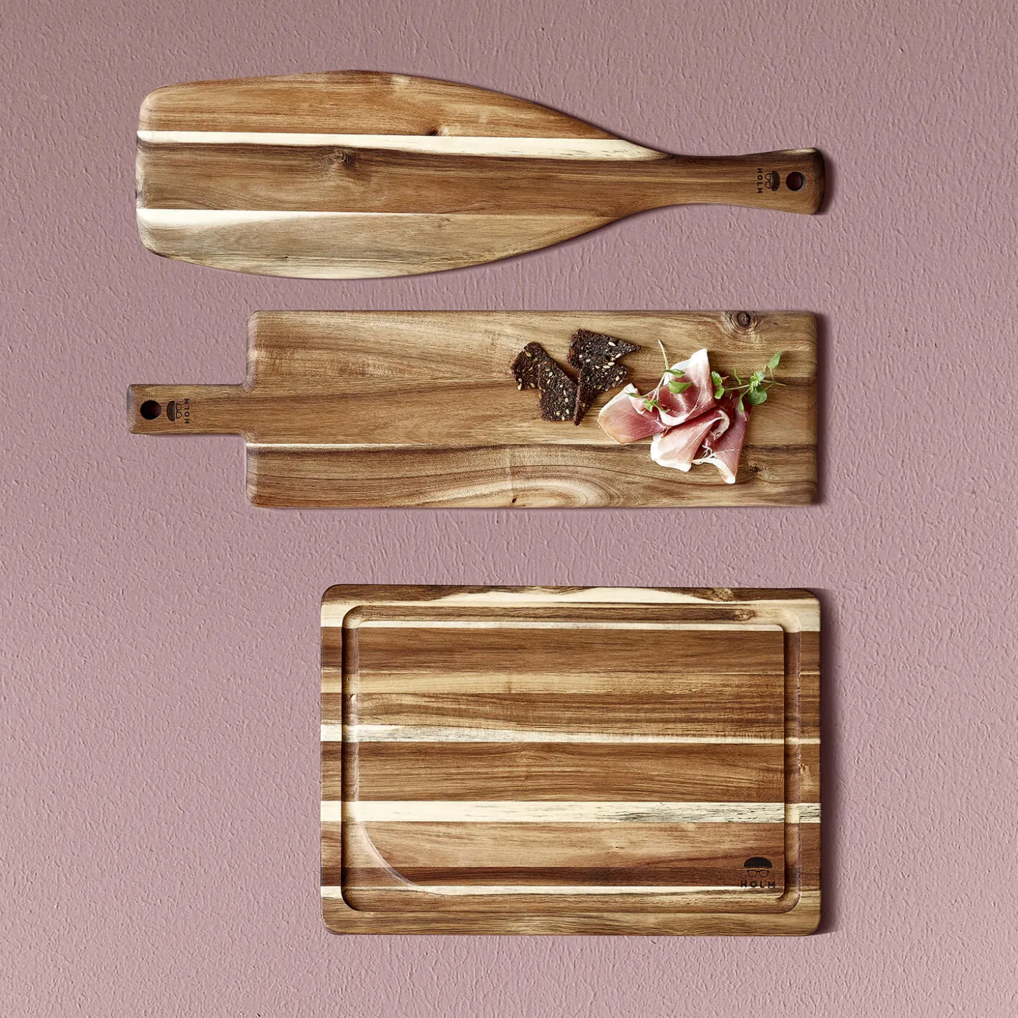 Skærebræt i akacietræ med saftrille. Det perfekte skærebræt til udskæring af store stege samt anden tranchering. Læg aldrig dit skærebræt i blød. Vaskes med varmt vand og mild sæbe.Varen er produceret i FSC®-certificeret akacietræ (FSC-C166612).