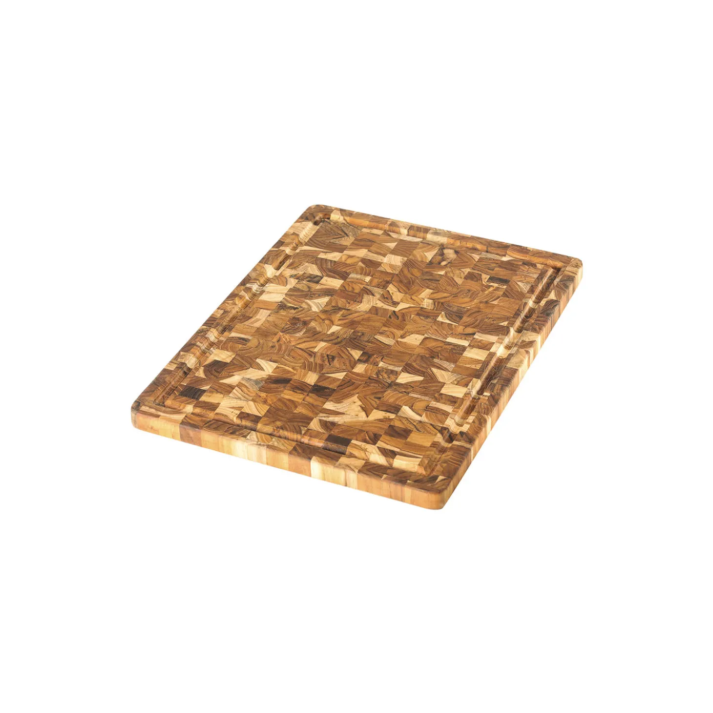 Flot skærebræt i teaktræ. Mønsteret er lavet med endekorn, som giver det et mere råt udseende. Skærebrættet kan bruges på begge sider. Skærebrættet et lavet i FSC-certificeret teaktræ. Teaktræ er et tropisk træ, der er kendt for sin høje vandbestandighed og et højt naturligt olieindhold. Teakhaus’ brædder har en naturlig skønhed, og hver enkel er forskellig og har et unikt mønster og farve