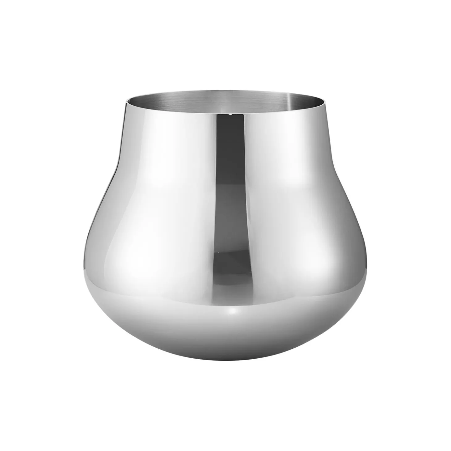I denne minimalistiske køler i rustfrit stål med organisk, skulpturel form holder din vin eller champagne den helt rigtige temperatur. Den er stor nok til to flasker vin eller til en champagneflaske og fås med sin helt egen hvide serviet, så du kan servere drypfri drikkevarer med stil!