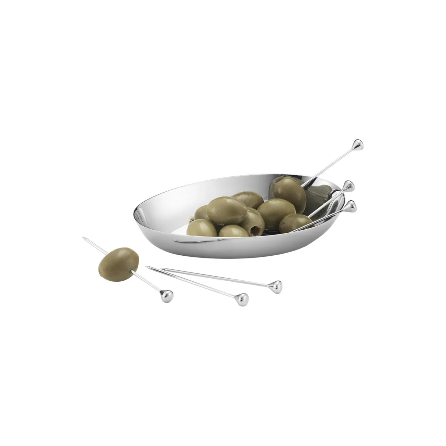 Den perfekte vært har god sans for detaljen, så løft din fest med disse iøjnefaldende cocktailpinde i rustfrit stål. Brug dem til at servere canapéer på med stil, eller gør dem til prikken over i’et i en martini, med et løg eller en oliven. De er genanvendelige og derfor bæredygtige og udgør en betænksom vært- eller værtindegave, når de præsenteres i deres særlige æske.