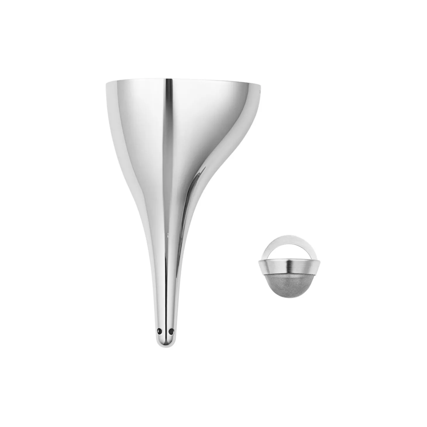 Opmærksomheden på de små detaljer kendetegner en fantastisk vært, og en karaffel optimerer både præsentationen og smagen af vinen. Brug denne stilfulde asymmetriske iltningstragt til at overføre vinen fra flaske til flaske, og giv hele ceremonien et ekstra stilfuldt pift. Den er fremstillet af rustfrit stål og leveres med et særligt aftageligt filter, der fjerner aflejringer og udgør det perfekte tilbehør til Sky-karaflen.