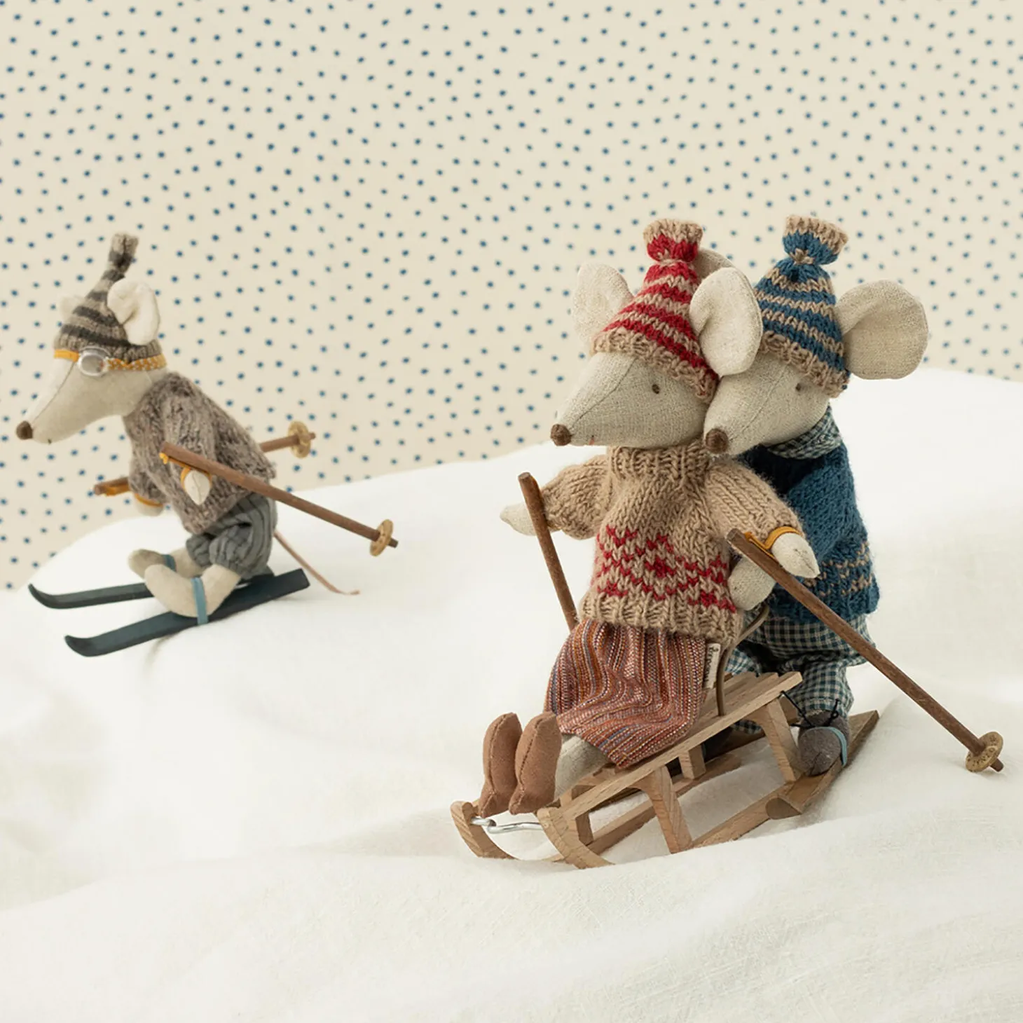 Denne slæde i træ er det perfekte tilbehør om vinteren, når sneen falder. Slæden passer perfekt til de mindre mus. Behold snoren på, så det er nemt at trække slæden rundt i sneen.