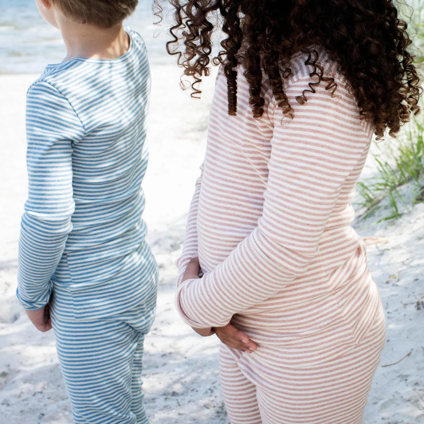Klassisk Serendipity slim fit t-shirt i blød melange striber i støvet rosa og offwhite. 100% økologisk bomuld og GOTS certificeret.