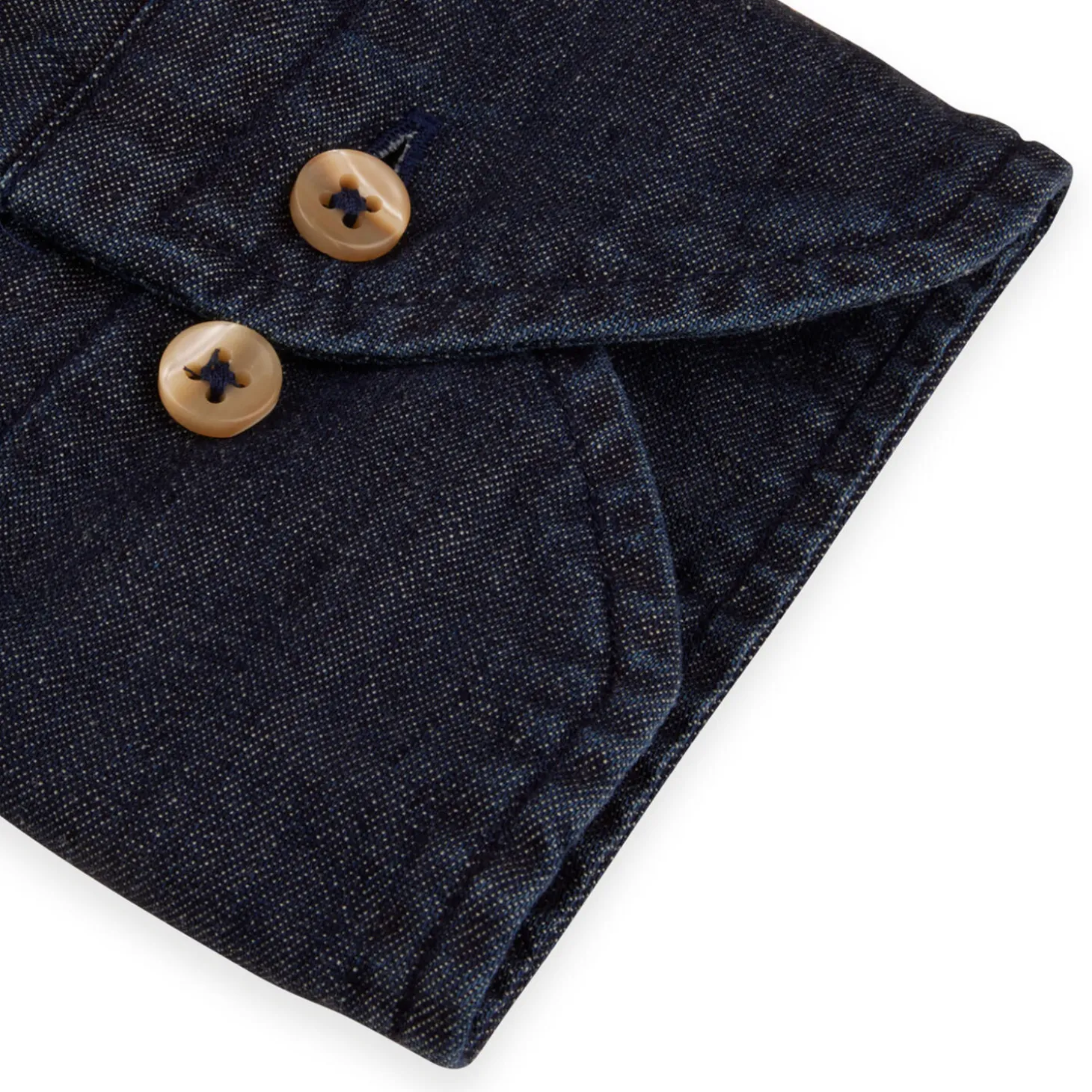Denne Slimline-denimskjorte er fremstillet i bomuld og elastan. Skjorten har perlemorsknapper, enkelte manchetter og cut away-krave.