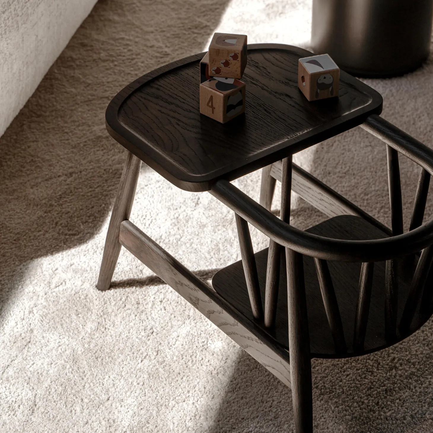 Smilla Toddler-stolen er designet af den danske designer, Nina Bruun. Stolen er skabt med en kompromisløs tilgang til såvel æstetik som håndværk og kvalitet. Det lille bord giver mulighed for både spisning og leg i trygge rammer. Stolen står meget stabilt og selv små børn kan derfor selv kravle op og ned fra stolen. Stolen er samlet i hånden af erfarne snedkere i Italien og udført i den bedste kvalitet af massiv egetræ. Den buede ryg er udført i et enkelt stykke dampbøjet eg, som på smukkeste vis giver en virkelig optimal komfort for barnet. Ved køb af stolen medfølger en lille gavepose med et sæt messingskilte. Skiltet kan graveres med en personlig hilsen eller navnet på barnet og herefter monteres på undersiden af sædet. En oplagt dåbsgave til familiens yngste. Stolen overholder alle europæiske sikkerhedskrav og er godkendt efter den europæiske sikkerhedsstandard EN 17191:2021Til børn fra ca. 6 måneder og op til 3 års-alderen.