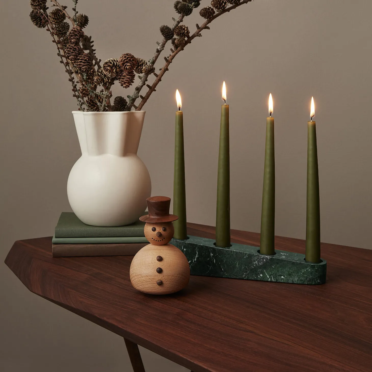 Snemanden er en del af Tumblers-konceptet fra Thor Høy: Træfigurer der skabes i en kombination af fri fantasi og nøje iagttagelser af eksempelvis enkelte dyrs særlige kendetegn. Tumblers er hjemmets fortrukne pyntegenstande men har alle tilføjet den særlige ’tumbler-effekt’ der gør dem mere levende og øger deres personlighed. Snemanden er håndlavet og skabt i bøgetræ og termoask.