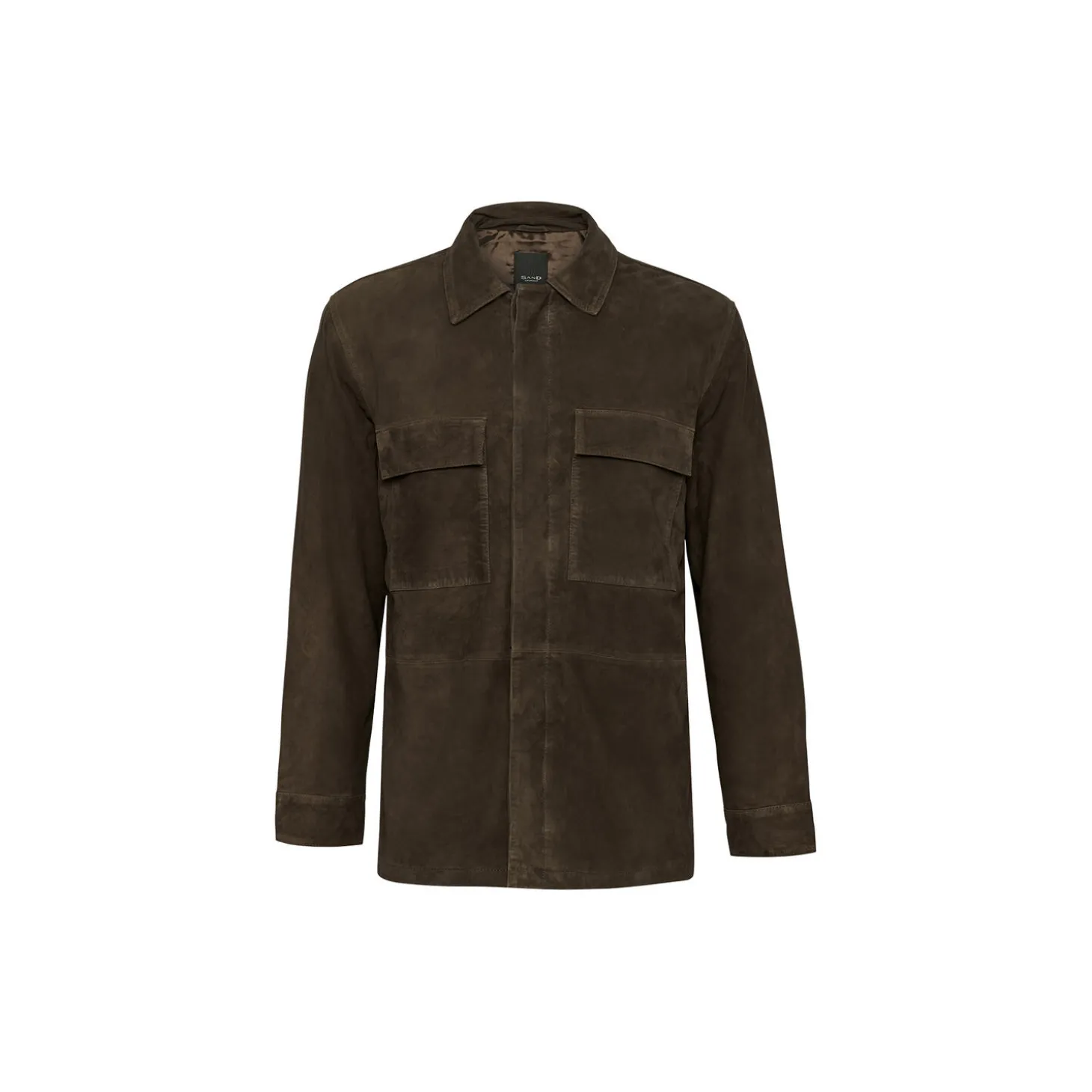 Over shirt. Front buttons closure with hidden button front fly. Patch pockets with flap at front. Modern fit