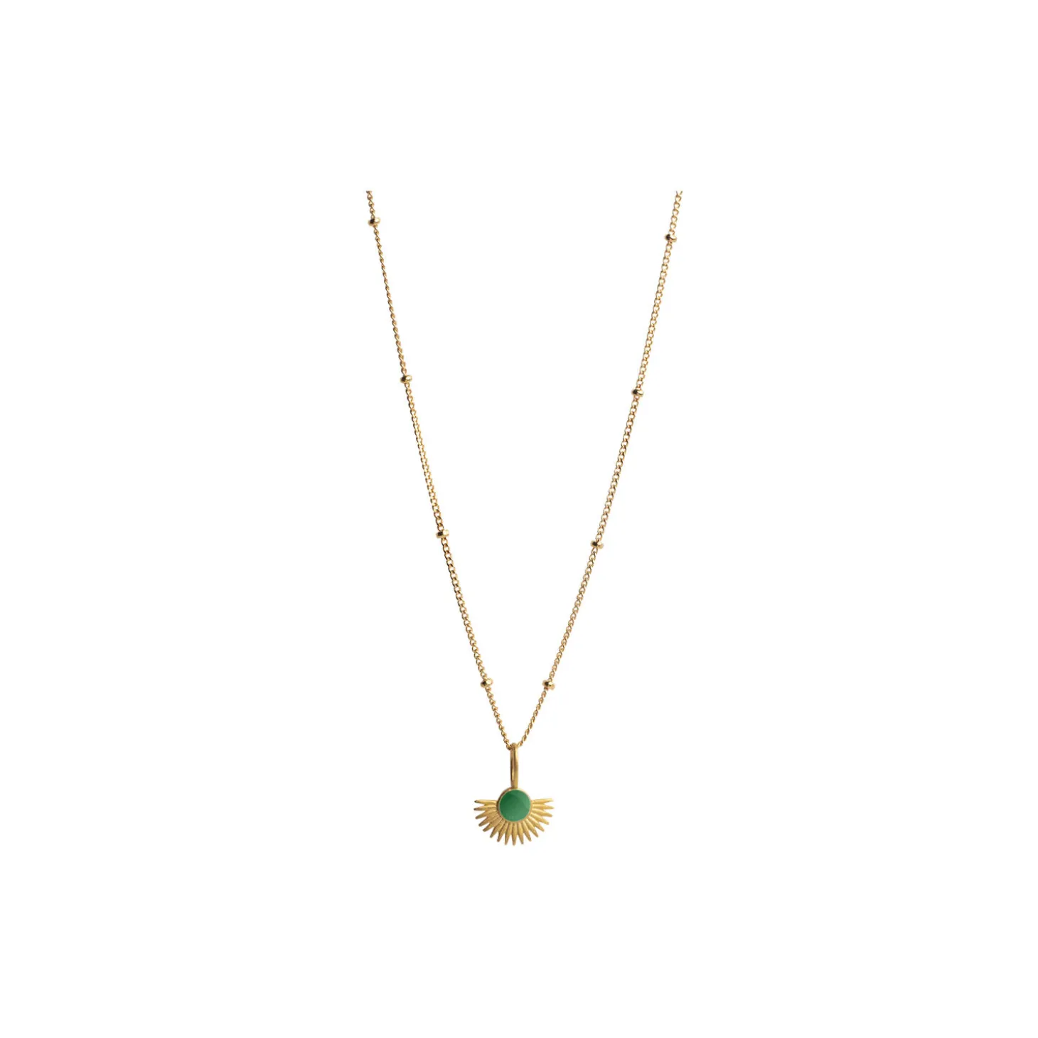 Soleil halskæden i forgyldt sterlingsølv fås i en masse skønne emaljefarver. Soleil fås også som øreringe og armbånd, og tilfører en unik og anderledes detalje til dit outfit. Vores unikke Soleil Halskæde i forgyldt sterlingsølv fås også i den dybe Petrol Green-farve. Den dybgrønne nuance skaber en aura af elegance og mystik. Petrol Green-farven tilfører en sofistikeret og dristig dimension til din stil, der skiller sig ud. Uanset om du ønsker at tilføje en dristig farve til dit look eller skabe et statement, vil den smukke Petrol Green Soleil Halskæde helt sikkert imponere. Udforsk også vores matchende øreringe og armbånd i samme farve for en komplet, harmonisk stil.