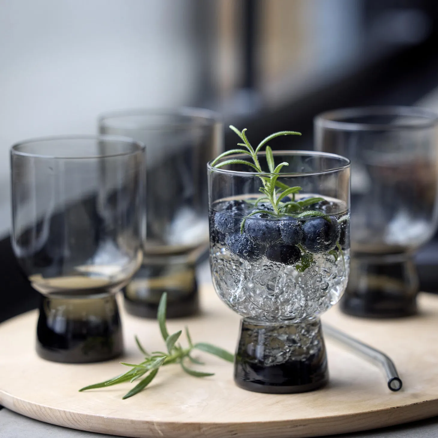 4 stk. vandglas, 30 cl, i gennemfarvet glas. Det smukke design løfter sanseoplevelsen, uanset om du nyder vand, juice eller en anden forfriskning.