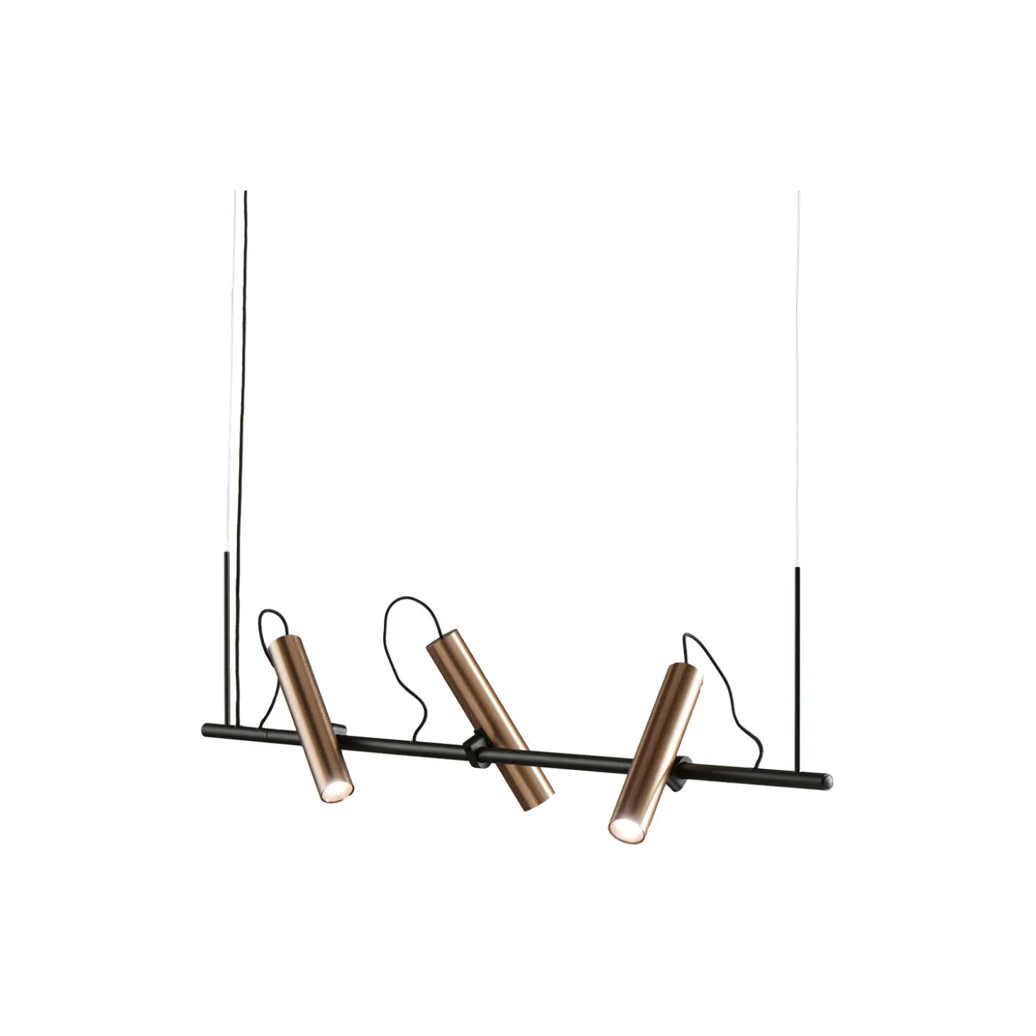 SPIRIT S1000 pendel i aluminium fra LIGHT-POINT. Farve: black/rose gold. Mål: L: 100 cm. Lyskilde: 3 x 5W LED. IP20. 2700K. Kan tilsluttes lysdæmper og anbefales kun til indendørs brug. Design: Ronni Gol.